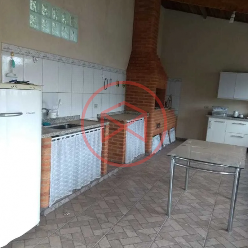 Terreno 800 mts² . Área construída em 214 mts². Casa com 3 dormitórios sendo 1 suíte, sala de estar, sala de jantar e sala de tv, cozinha + copa, wc social, corredor central, área de serviço. Espaço Gourmet com churrasqueira e pia para suporte. Espaço para estacionar 03 veículos. Quartinho de ferramentas. Pomar com árvores frutíferas. Horta. Cercado 100% com alambrado e entrada padrão de chácara, privacidade total. Condomínio com segurança 24 hs, portaria e ronda, localizado 10 km antes do Centro de Ibiúna.