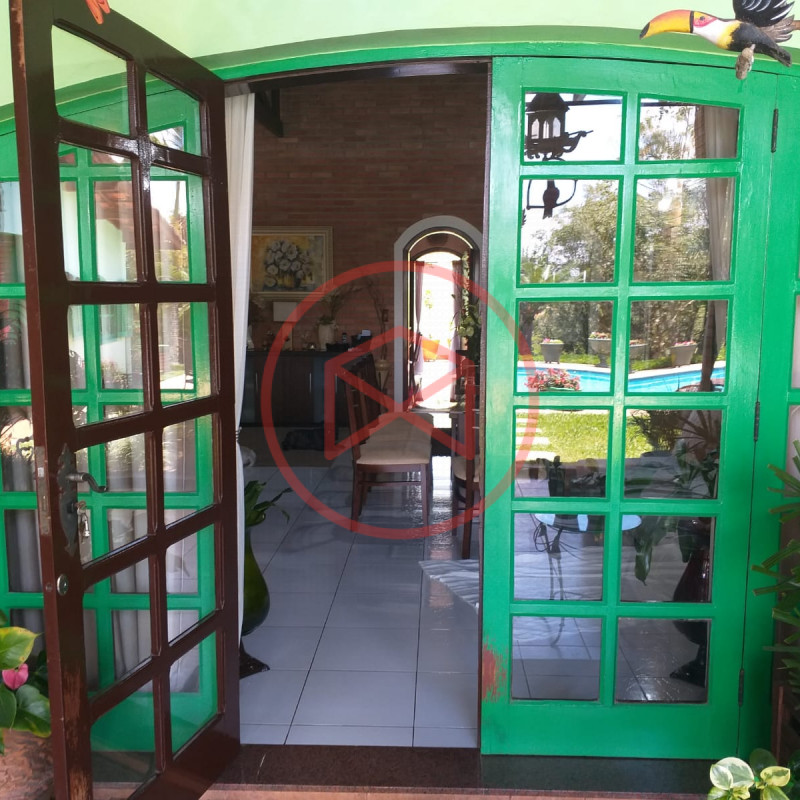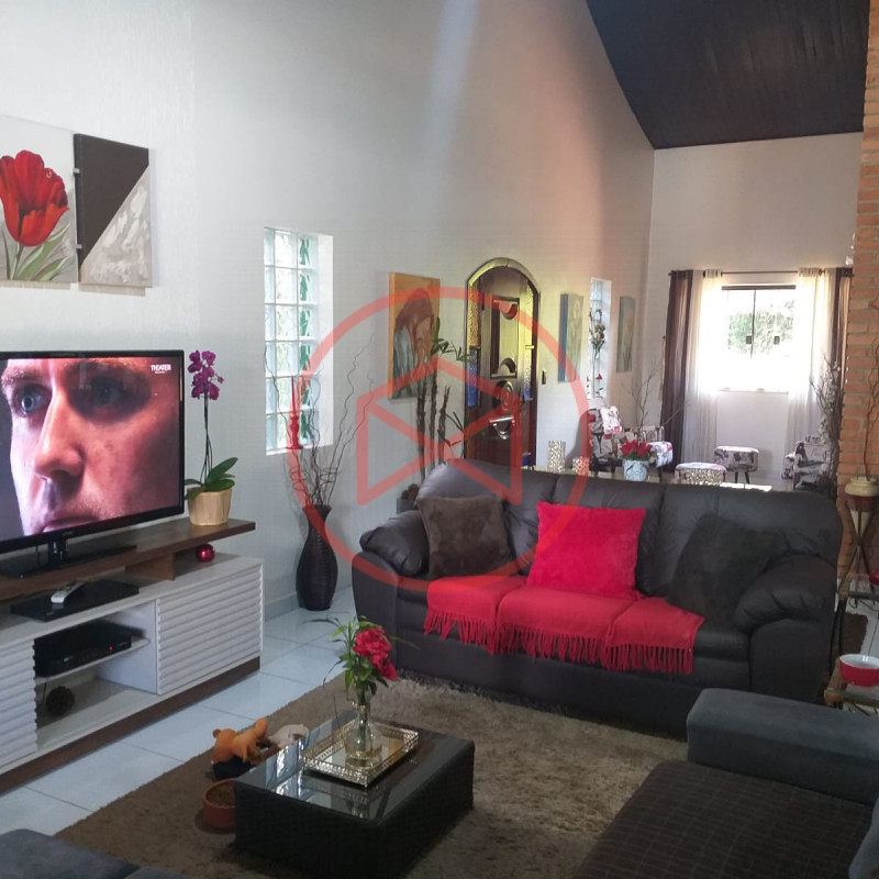 Condomínio de Alto Padrão, bem localizado de fácil acesso antes do Centro de Ibiúna. Terreno 1.000 mts² bem aproveitável. Área construída em 324,31 mts² acabamento de boa qualidade. Casa Estilo Colonial com 3 suítes, sendo 1 com closet, escritório, sala com 03 ambientes com pé-direito-alto (sendo sala de jantar, sala de tv e sala de estar) e hall de distribuição, cozinha com copa, despensa e área de serviço. Varanda em "L". Espaço Gourmet com churrasqueira, forno de pizza e cozinha como suporte. Piscina em alvenaria 4 x 8 com deck de pedra mineira. 1 suíte externa para hóspedes. Paisagismo moderno. Espaço para estacionar 04 carros sendo 03 vagas cobertas. Quartinho de ferramentas. Área verde. Pomar. Além das belas paisagens, o condomínio conta com ruas pavimentadas, calçadas e uma ótima infraestrutura de lazer, muito bem localizado na beira da pista principal de Ibiúna, com segurança 24 horas, portaria e ronda motorizada, clube social completo com piscinas adulto e infantil, restaurante, lagos para pesca, amplo quiosque para eventos, festas e jogos, churrasqueiras, quadra poliesportiva, playground, 03 quadras de tênis, 02 campos de futebol, praças, entre outros atrativos, conforto e segurança, somente 50 minutos de São Paulo, more com tranquilidade em lugar de beleza incomum, cercado por mata nativa e lindas residências, onde 70% são moradores, ideal para moradia e lazer.