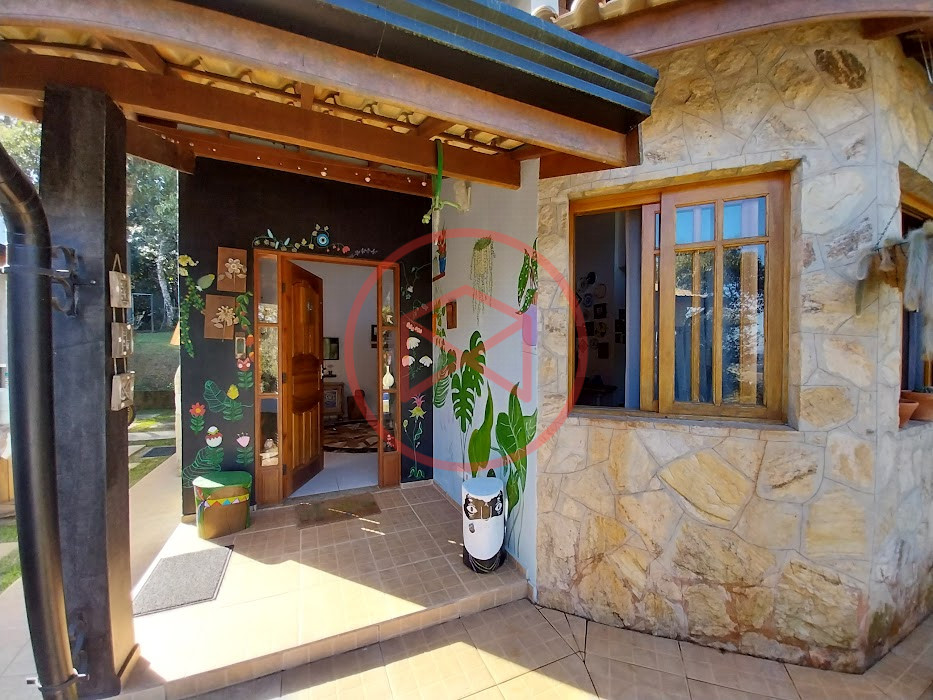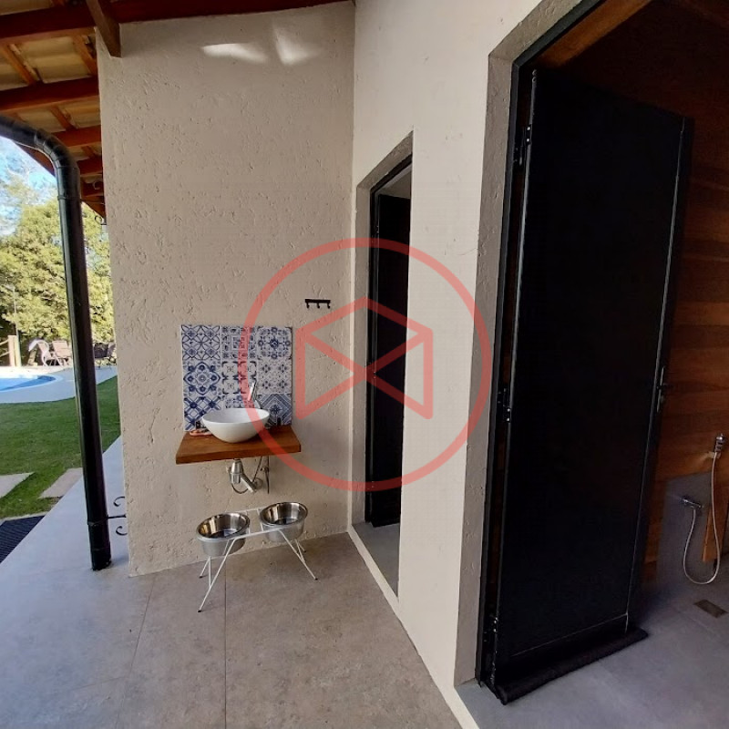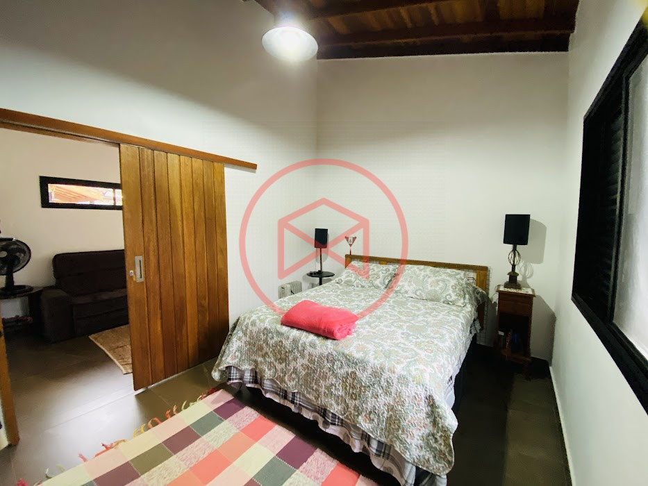 Terreno com 2.100 mts2 contendo 356,00 mts2 de área construída, Casa com 02 dormitórios sendo 01 suite com porta balcão voltada para a piscina e banheiro social, sala 02 ambientes (sala de jantar com lareira e sala de estar), lavabo, cozinha com móveis planejados, dispensa e área de serviço. Casa toda preparada para instalação de aquecimento solar/gás. Espaço gourmet com churrasqueira, forno de pizza, fogão a lenha, com cozinha completa e ampla bancada de mármore e móveis planejados, suíte para hóspedes e sala de TV. Aquecimento solar. Piscina 8 x 4 m em vinil aquecida recém reformada com iluminação interna controlada por controle remoto, deck de piso antiderrapante, cascata e ducha. Sauna seca elétrica automatizada. Banheiro externo. Playground. Redário. Fogo de chão. Quarto de depósito e canil com caixa d’água central de 5.000 litros. Caixa de água de recalque instalada próximo do relógio medidor de consumo com 5.000 litros e automação para bombeamento quando o nível da caixa superior (Depósito) estiver abaixo de 50% do volume. Toda as calhas de coleta de água dos telhados estão canalizadas o que permitirá a instalação de cisterna para reutilização da água. Pomar gramado com árvores frutíferas produzindo. Rampa de acesso com bloquetes sextavados até área das construções. Propriedade com muros e alambrados cercando-a e entrada padrão de chácara. Agende já sua visita!