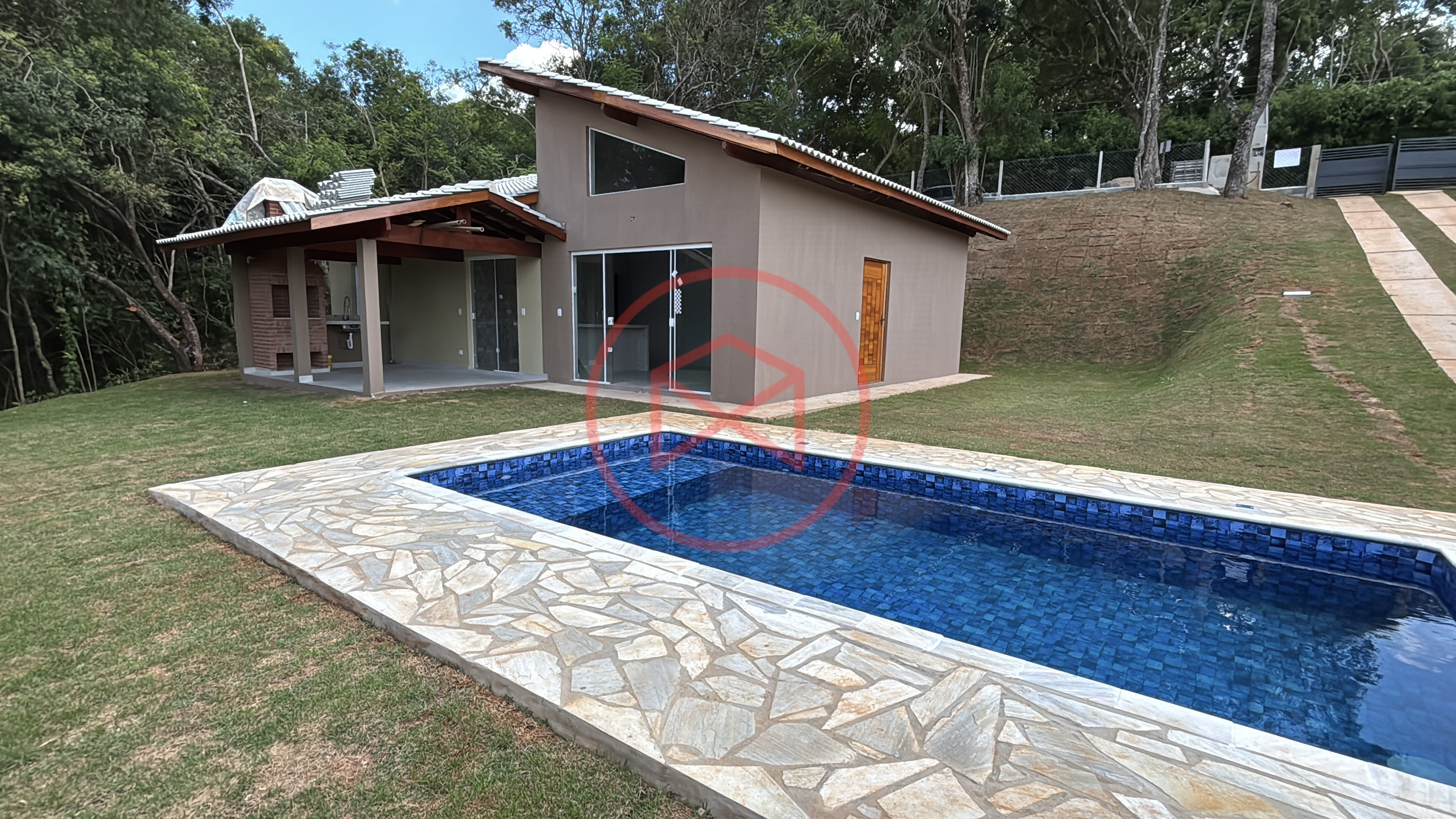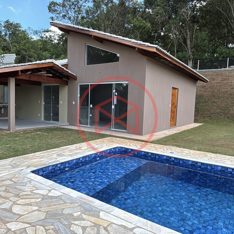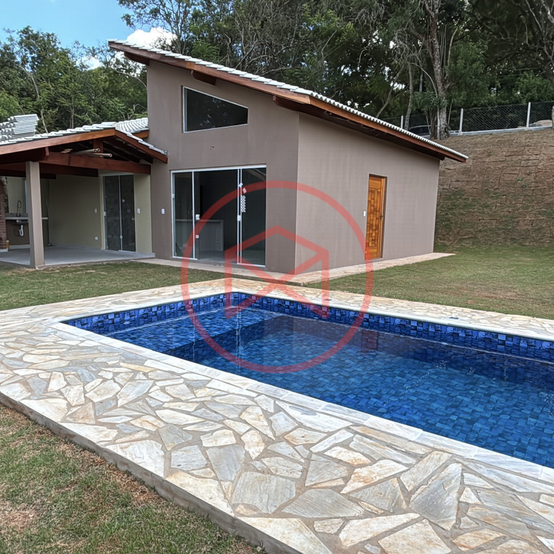 Terreno de 1.250 mts², totalmente gramado, lugar privilegiado. Área construída em 120 mts² tudo de boa qualidade e bom gosto. Casa Nova e Arquitetura Moderna com 03 dormitórios, sendo 1 suíte, cozinha conceito aberto, sala com 02 ambientes, banheiro social e varanda gourmet com churrasqueira e pia de apoio . Piscina com prainha. Espaço para estacionar 02 veículos. Totalmente cercado com alambrado e entrada de chácara com portão de madeira. Boa localização, 600 mts do asfalto, fácil acesso. Local tranquilo com moradores e veraneios ao redor, comércio local na pista principal, telefone fixo, internet fibra, ônibus circular para o Centro de Ibiúna. Água da Sabesp. Venham conferir essa grande oportunidade!