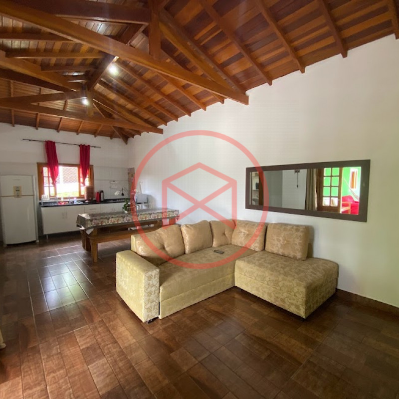 Terreno de 1.600 mts, ótima topografia, totalmente gramado, lugar alto com linda vista panorâmica. Área construída em torno de 250 mts² tudo de boa qualidade e bom gosto. Casa Sede com 02 dormitórios, corredor lateral, cozinha conceito aberto, sala com 02 ambientes com pé-direito-alto e porta balcão, banheiro social e varanda em formato de "L". Área de serviço, banheiro externo e despensa. Placas de iluminação e quecimento solar. Espaço gourmet com churrasqueira e pia de apoio. Piscina em vinil com prainha, cascata e deck de pedra mineira. Campo de futebol. Casa de hóspedes com 01 dormitório, banheiro social e cozinha espaçosa. Pomar com diversas árvores já produzindo. Horta. Espaço para estacionar em média de 08 veículos. Poço caipira. Totalmente cercado com alambrado e entrada padrão de chácara. Boa localização, apenas 6 km do Centro de Ibiúna. Venham conferir essa grande oportunidade !!!