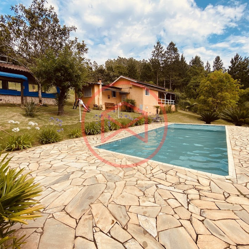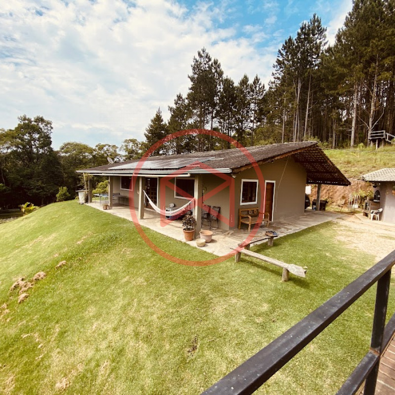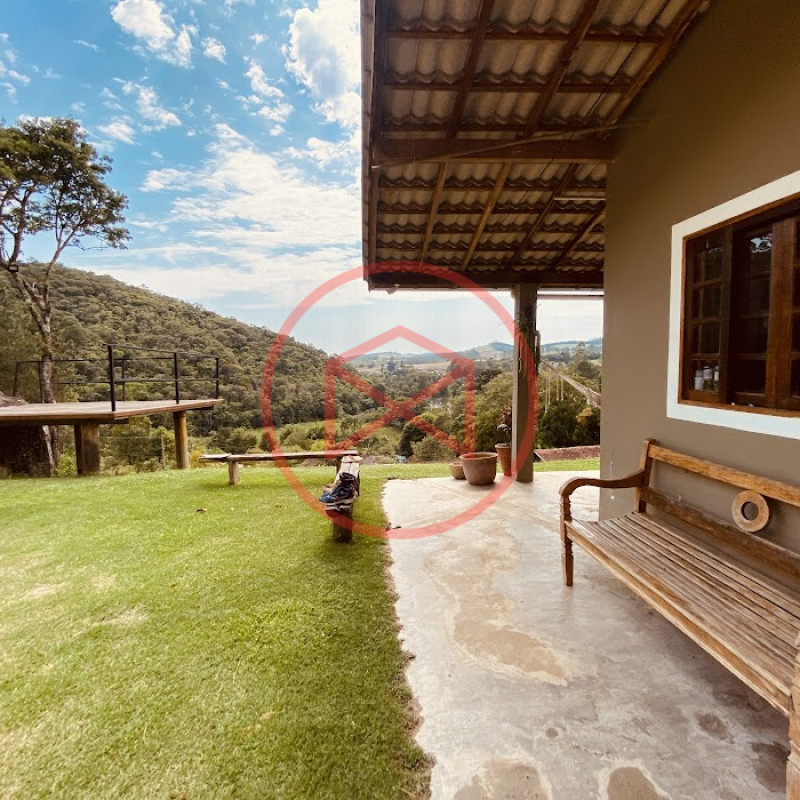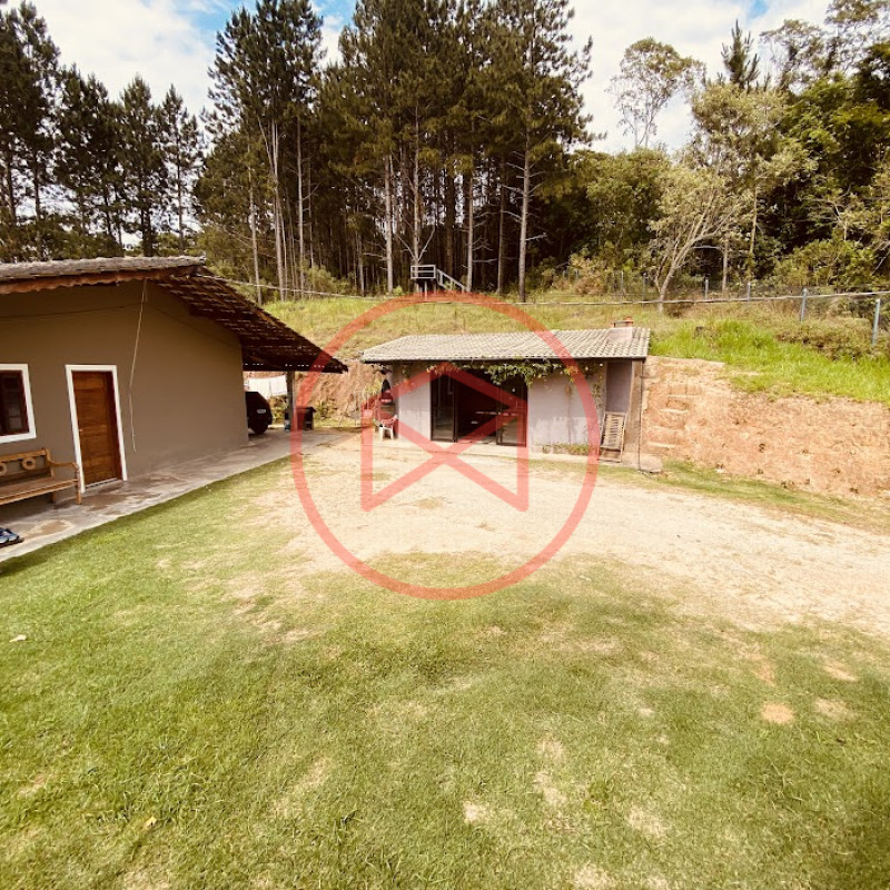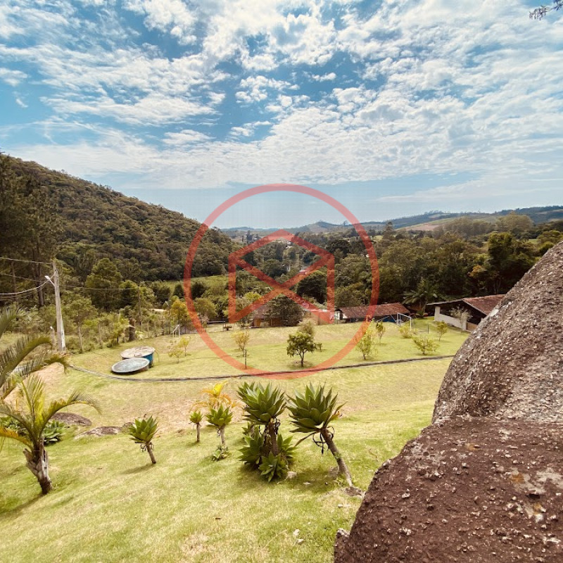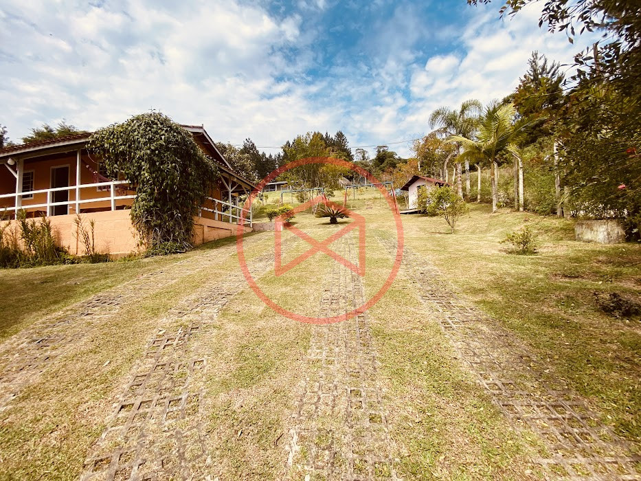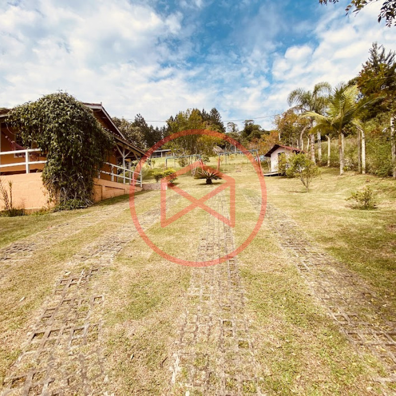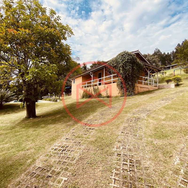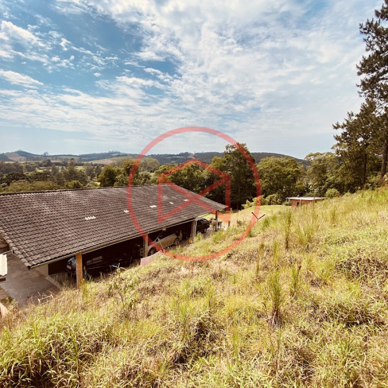 Apenas 300 mts de estrada. Lugar com linda vista panorâmica. Terreno 12.500 mts² boa topografia acima do nível da rua, bem aproveitável, 90% desmatado. Área construída em torno de 700 mts². Casa Sede com 3 suítes, sala de jantar com linda vista, sala de tv, cozinha estilo americano conceito aberto com móveis planejados, área de serviço e varandão. Casa de hóspedes com 2 quartos, sendo 1 suíte, sala, cozinha com copa, sala de tv, sala de estar, banheiro social, área de serviço e varanda. Espaço Gourmet com "trio-mineiro": churrasqueira, forno e fogão a lenha, pia como suporte e lavabo, salão de jogos/festa integrado. Piscina em vinil com prainha, deck de pedra natural e pequeno deck de madeira. Lago com nascente. Propriedade toda gramada. Horta. Pomar com árvores frutíferas. Bosque com árvores nativas. Campo de futebol. Galpão. Galinheiro. Canil. Playground. Espaço para estacionar em média de 10 carros. Totalmente cercado com alambrado e entrada padrão de chácara. Localizada apenas 30 minutos da cidade, telefone fixo e internet fibra óptica, chácaras vizinhas formadas por moradores e veraneios. Vale a pena analisar essa grande oportunidade.