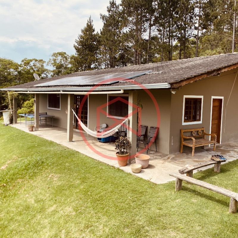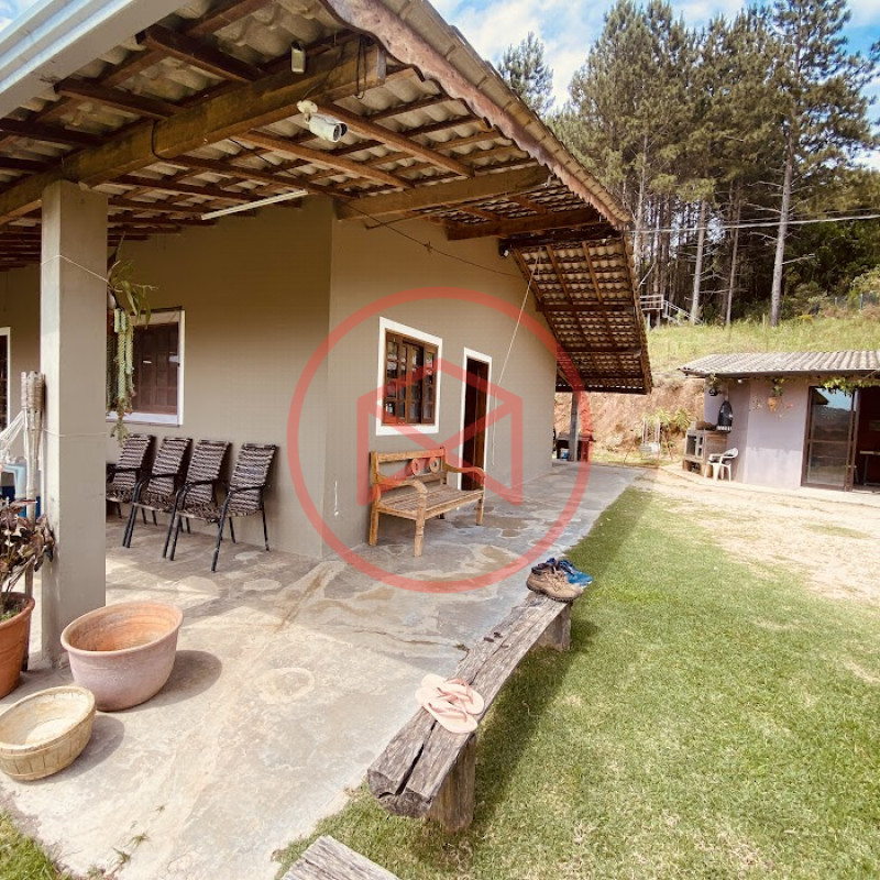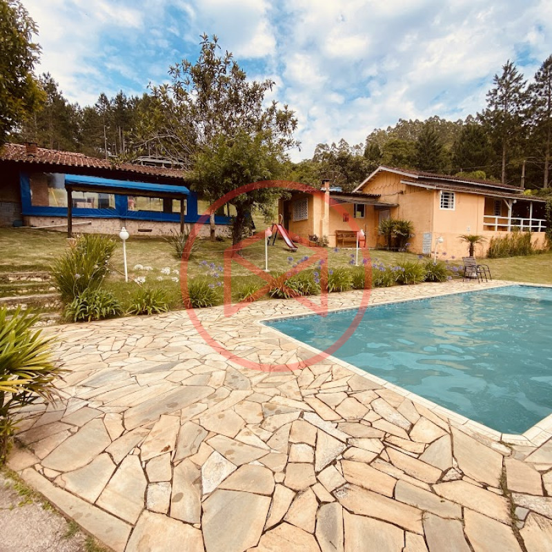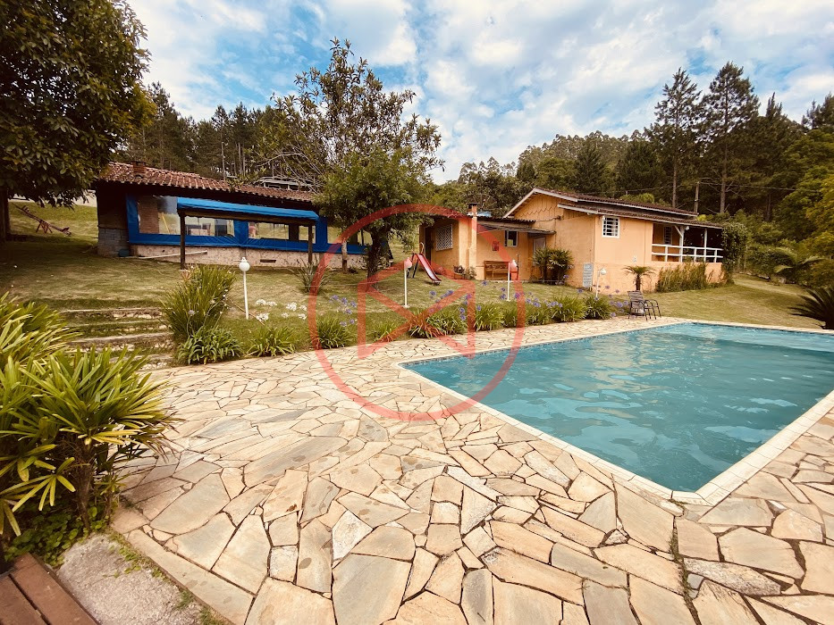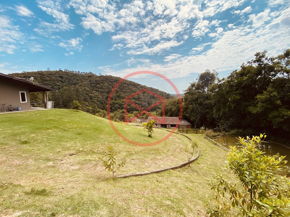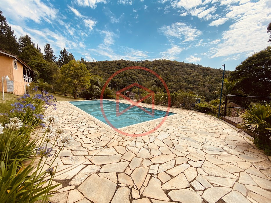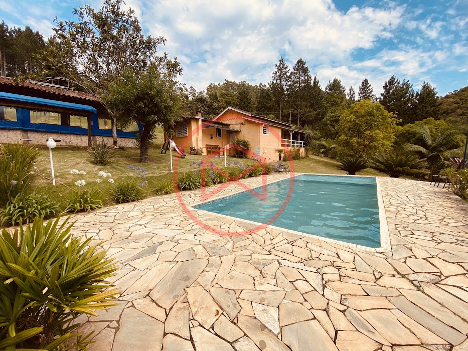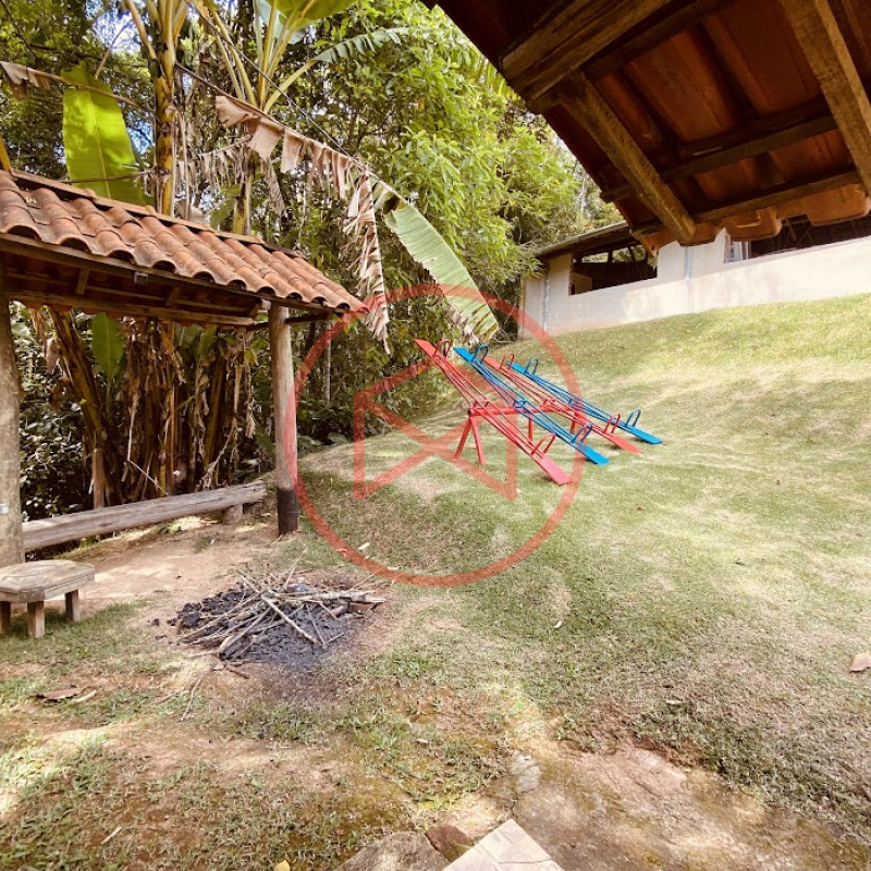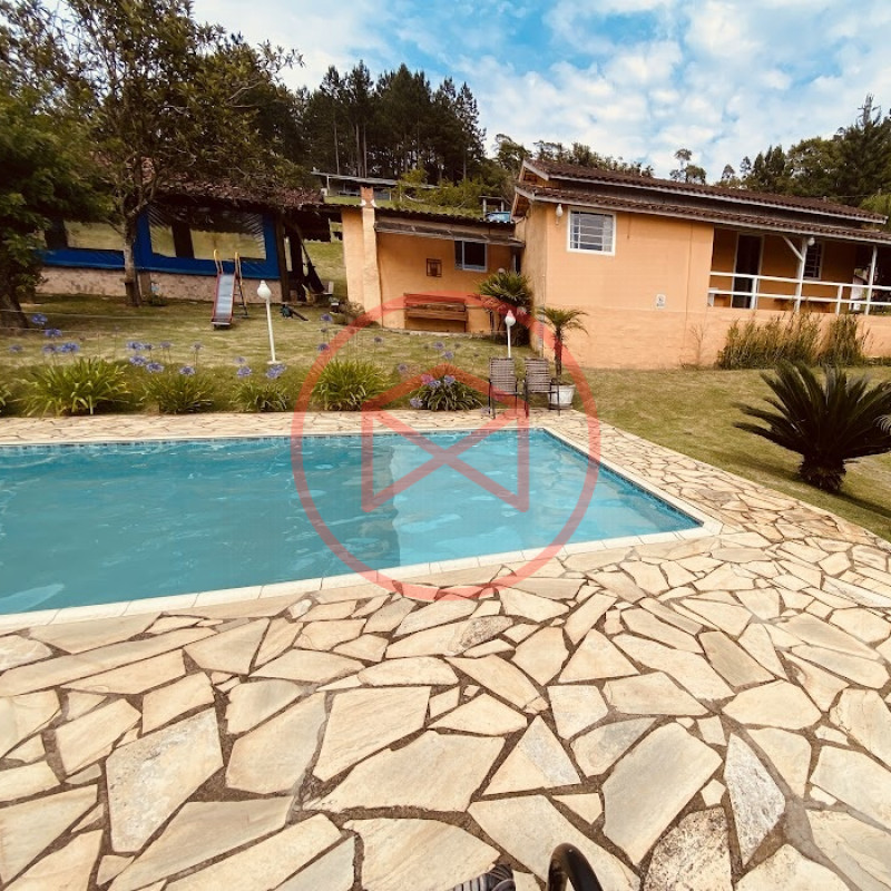 Apenas 300 mts de estrada. Lugar com linda vista panorâmica. Terreno 12.500 mts² boa topografia acima do nível da rua, bem aproveitável, 90% desmatado. Área construída em torno de 700 mts². Casa Sede com 3 suítes, sala de jantar com linda vista, sala de tv, cozinha estilo americano conceito aberto com móveis planejados, área de serviço e varandão. Casa de hóspedes com 2 quartos, sendo 1 suíte, sala, cozinha com copa, sala de tv, sala de estar, banheiro social, área de serviço e varanda. Espaço Gourmet com "trio-mineiro": churrasqueira, forno e fogão a lenha, pia como suporte e lavabo, salão de jogos/festa integrado. Piscina em vinil com prainha, deck de pedra natural e pequeno deck de madeira. Lago com nascente. Propriedade toda gramada. Horta. Pomar com árvores frutíferas. Bosque com árvores nativas. Campo de futebol. Galpão. Galinheiro. Canil. Playground. Espaço para estacionar em média de 10 carros. Totalmente cercado com alambrado e entrada padrão de chácara. Localizada apenas 30 minutos da cidade, telefone fixo e internet fibra óptica, chácaras vizinhas formadas por moradores e veraneios. Vale a pena analisar essa grande oportunidade.