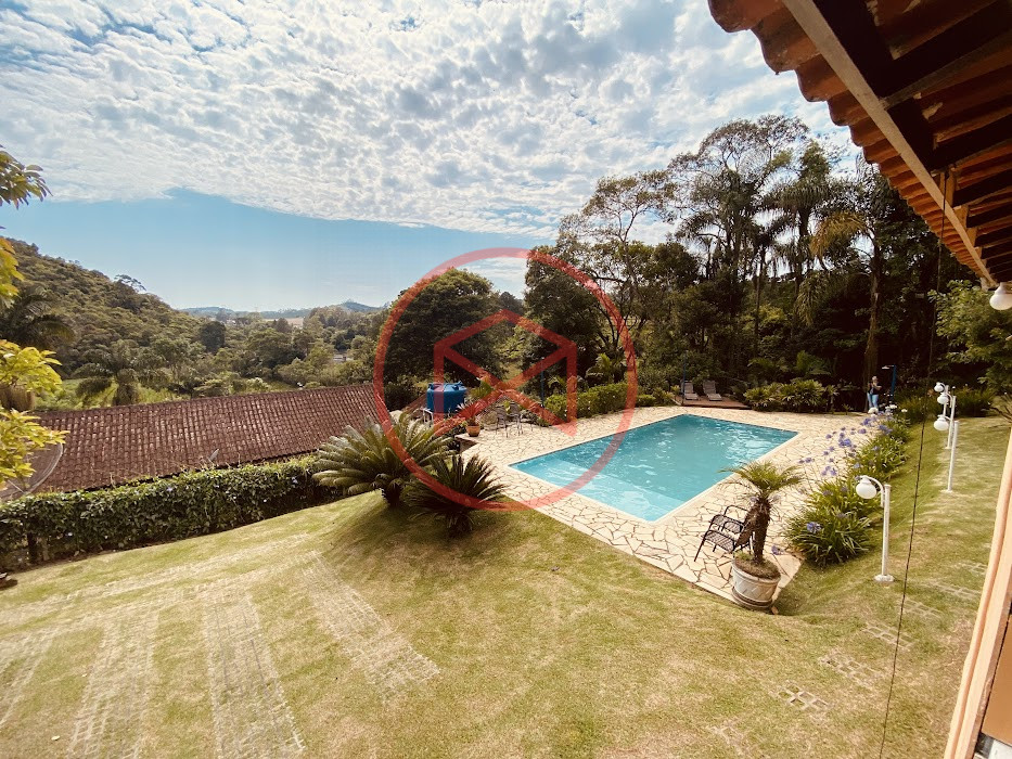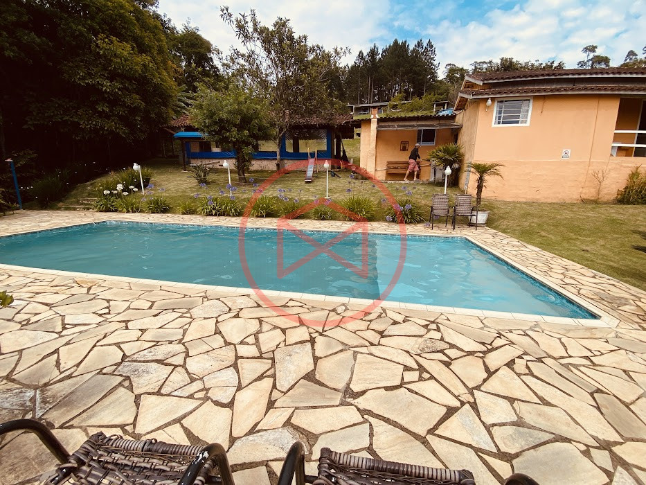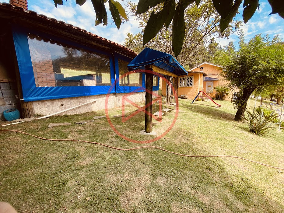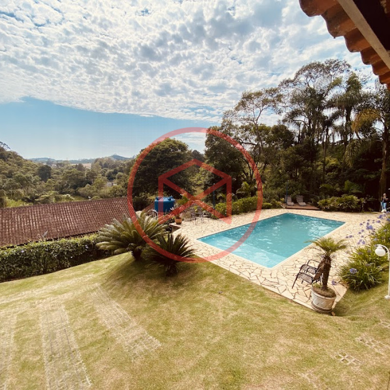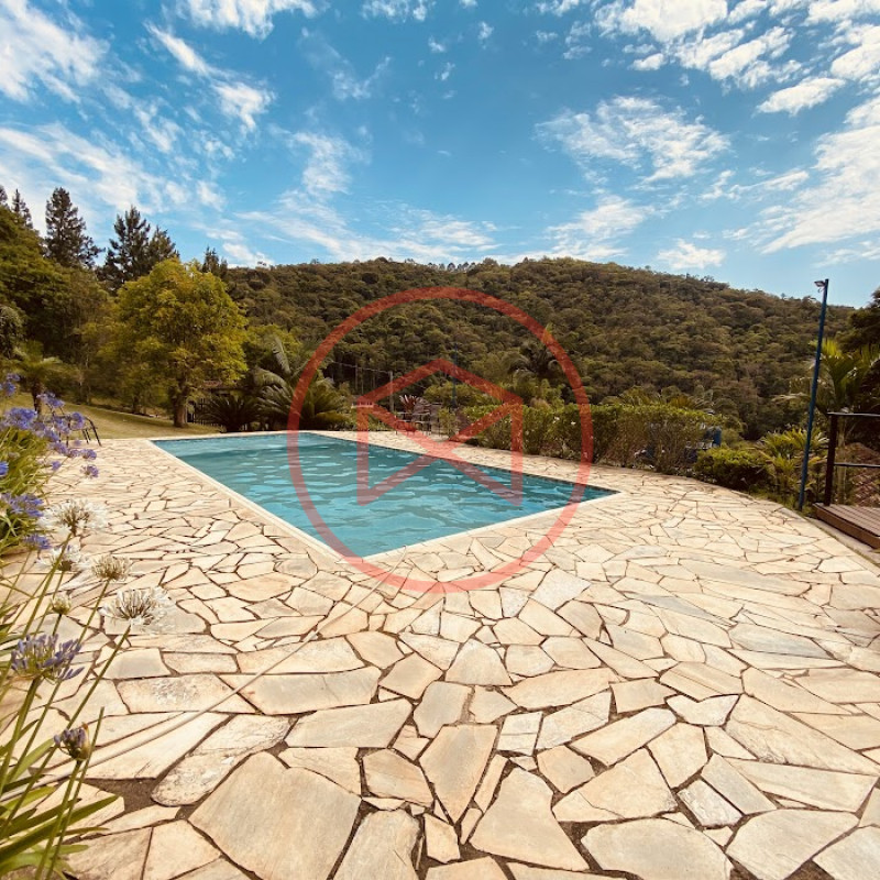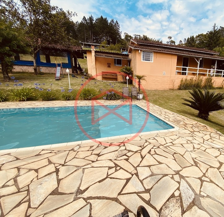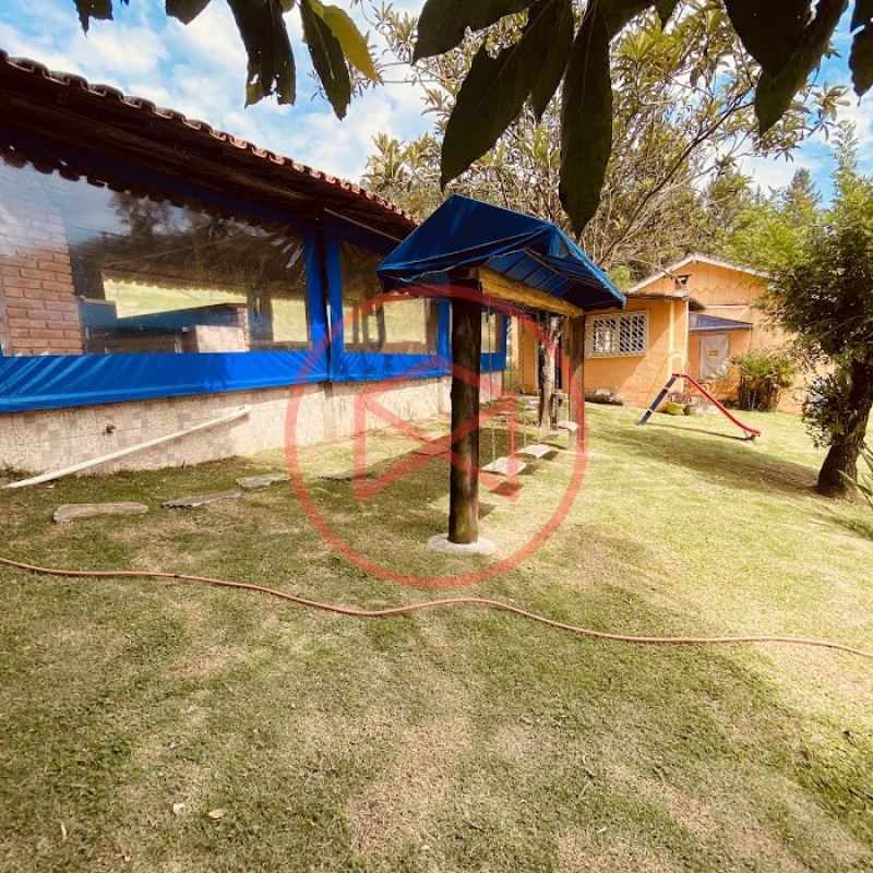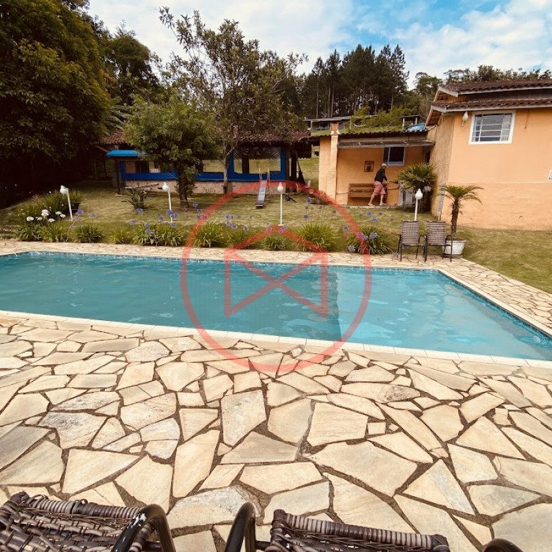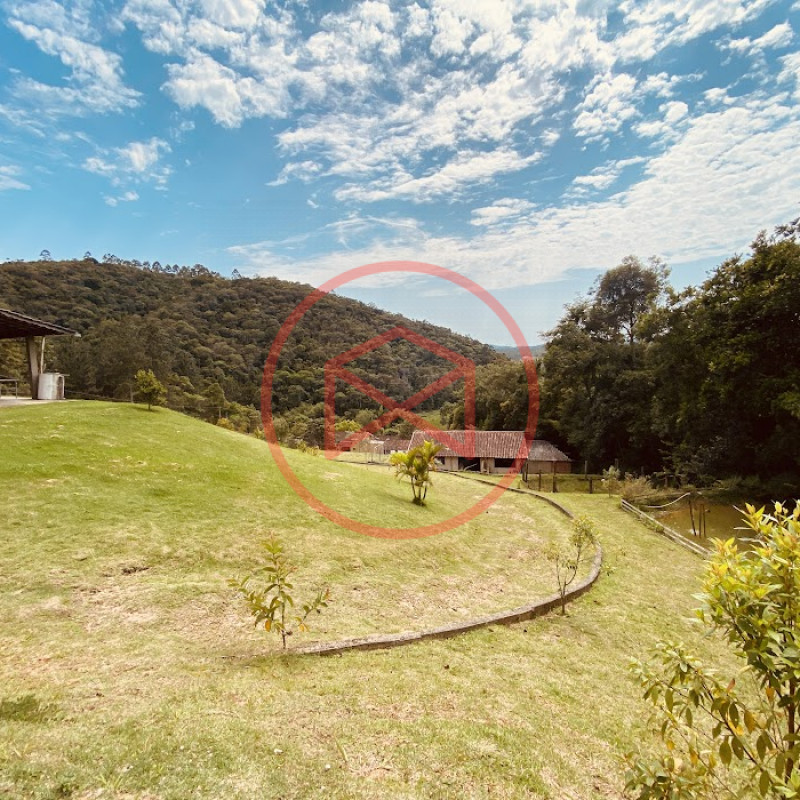 Apenas 300 mts de estrada. Lugar com linda vista panorâmica. Terreno 12.500 mts² boa topografia acima do nível da rua, bem aproveitável, 90% desmatado. Área construída em torno de 700 mts². Casa Sede com 3 suítes, sala de jantar com linda vista, sala de tv, cozinha estilo americano conceito aberto com móveis planejados, área de serviço e varandão. Casa de hóspedes com 2 quartos, sendo 1 suíte, sala, cozinha com copa, sala de tv, sala de estar, banheiro social, área de serviço e varanda. Espaço Gourmet com "trio-mineiro": churrasqueira, forno e fogão a lenha, pia como suporte e lavabo, salão de jogos/festa integrado. Piscina em vinil com prainha, deck de pedra natural e pequeno deck de madeira. Lago com nascente. Propriedade toda gramada. Horta. Pomar com árvores frutíferas. Bosque com árvores nativas. Campo de futebol. Galpão. Galinheiro. Canil. Playground. Espaço para estacionar em média de 10 carros. Totalmente cercado com alambrado e entrada padrão de chácara. Localizada apenas 30 minutos da cidade, telefone fixo e internet fibra óptica, chácaras vizinhas formadas por moradores e veraneios. Vale a pena analisar essa grande oportunidade.