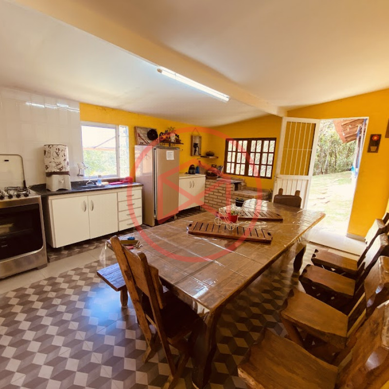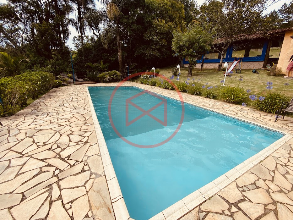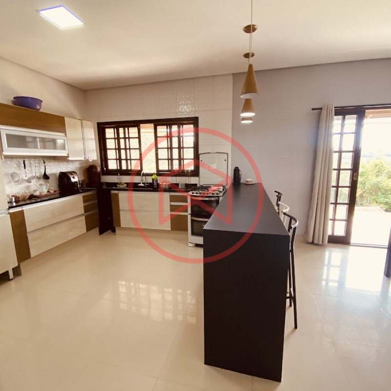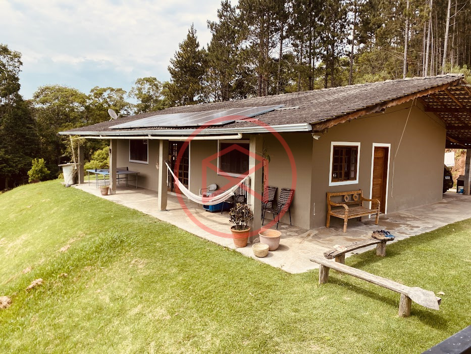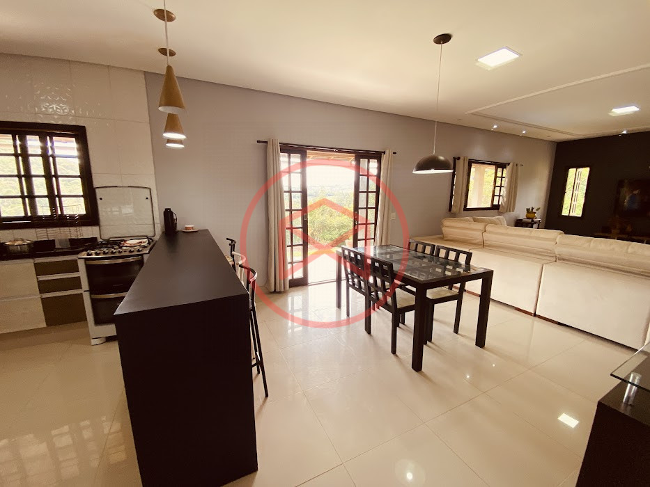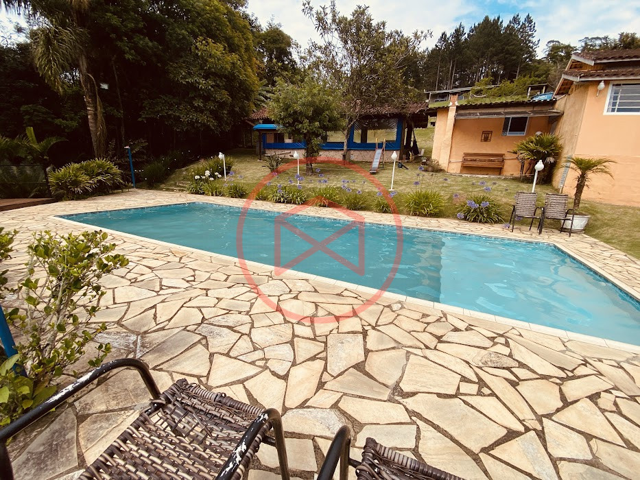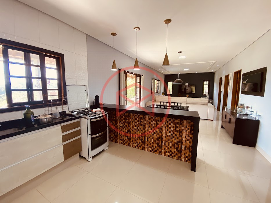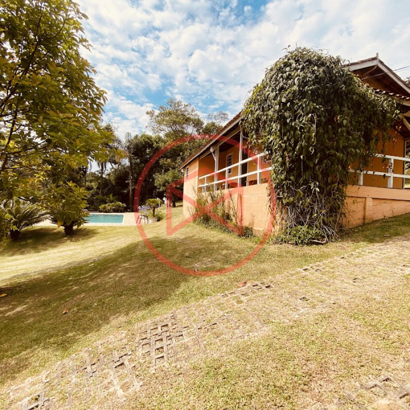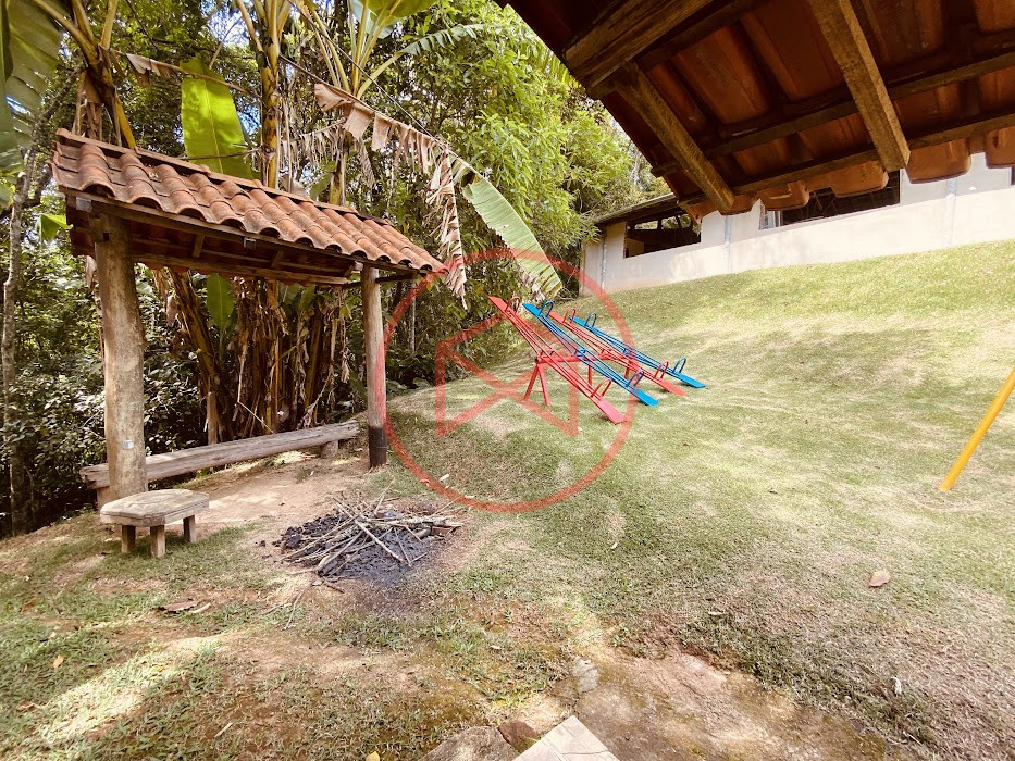 Apenas 300 mts de estrada. Lugar com linda vista panorâmica. Terreno 12.500 mts² boa topografia acima do nível da rua, bem aproveitável, 90% desmatado. Área construída em torno de 700 mts². Casa Sede com 3 suítes, sala de jantar com linda vista, sala de tv, cozinha estilo americano conceito aberto com móveis planejados, área de serviço e varandão. Casa de hóspedes com 2 quartos, sendo 1 suíte, sala, cozinha com copa, sala de tv, sala de estar, banheiro social, área de serviço e varanda. Espaço Gourmet com "trio-mineiro": churrasqueira, forno e fogão a lenha, pia como suporte e lavabo, salão de jogos/festa integrado. Piscina em vinil com prainha, deck de pedra natural e pequeno deck de madeira. Lago com nascente. Propriedade toda gramada. Horta. Pomar com árvores frutíferas. Bosque com árvores nativas. Campo de futebol. Galpão. Galinheiro. Canil. Playground. Espaço para estacionar em média de 10 carros. Totalmente cercado com alambrado e entrada padrão de chácara. Localizada apenas 30 minutos da cidade, telefone fixo e internet fibra óptica, chácaras vizinhas formadas por moradores e veraneios. Vale a pena analisar essa grande oportunidade.