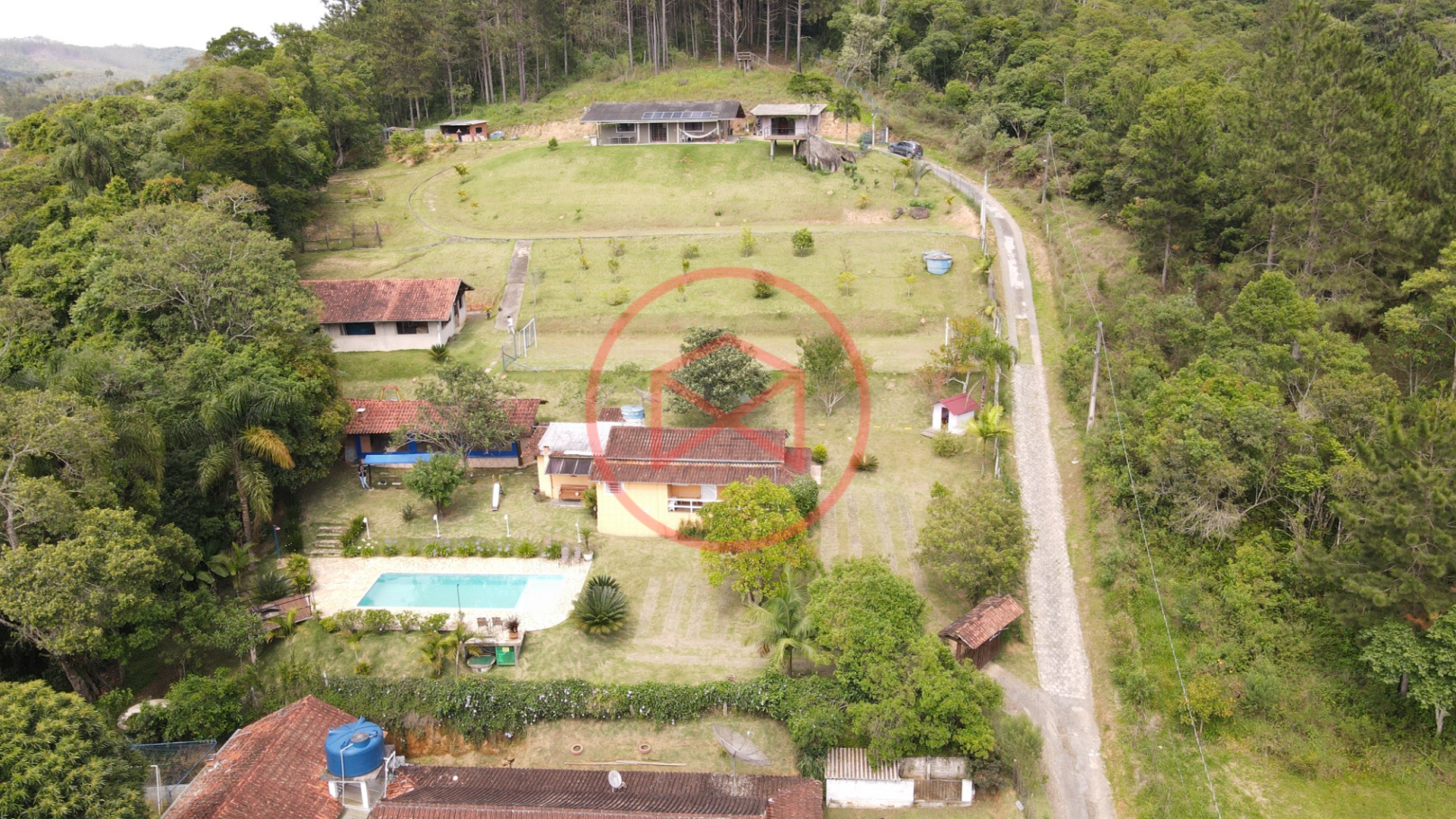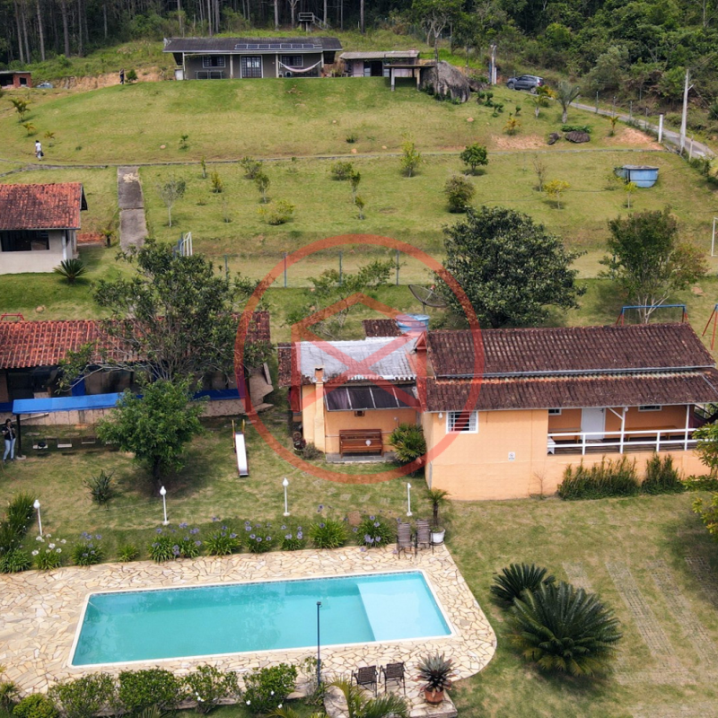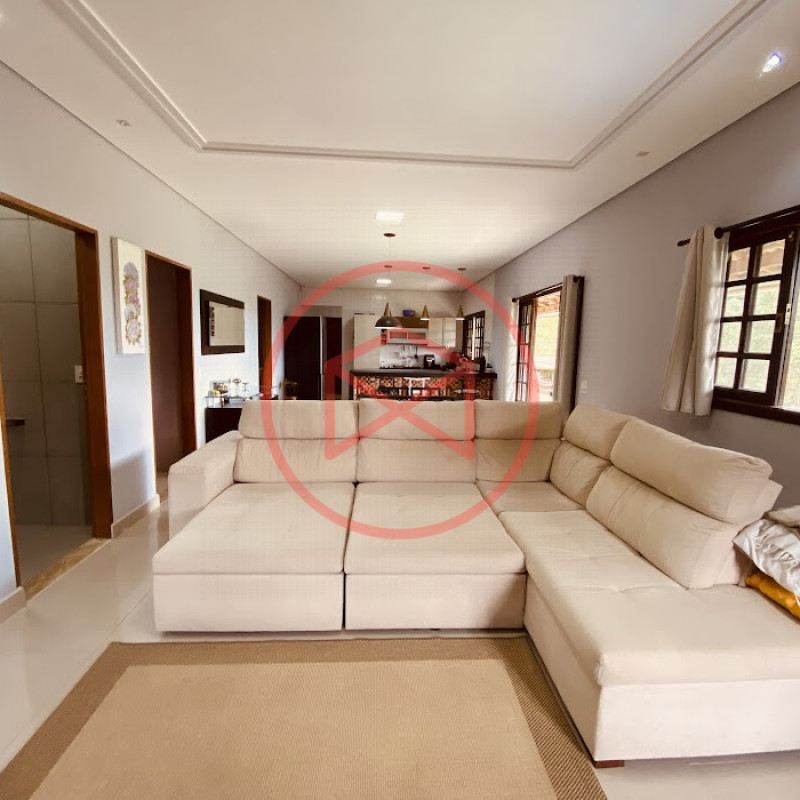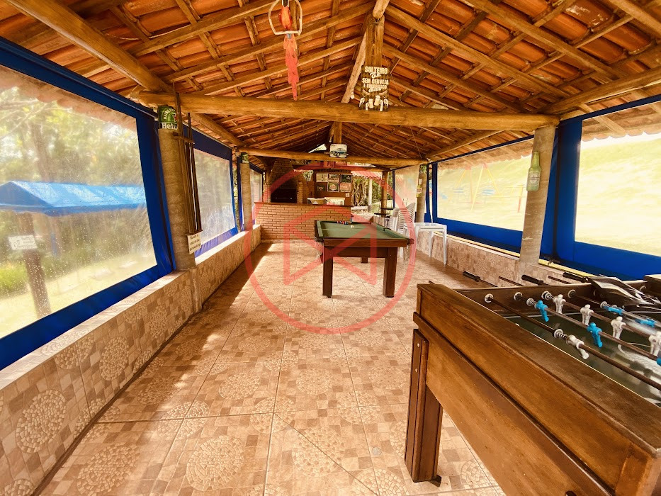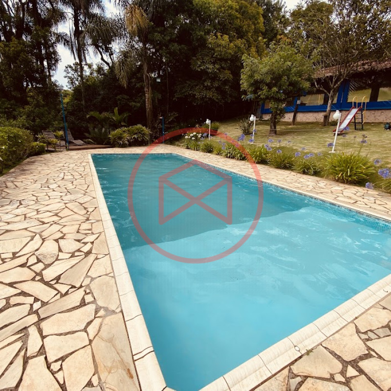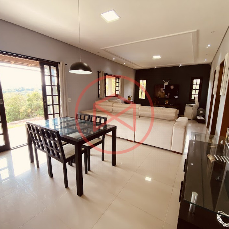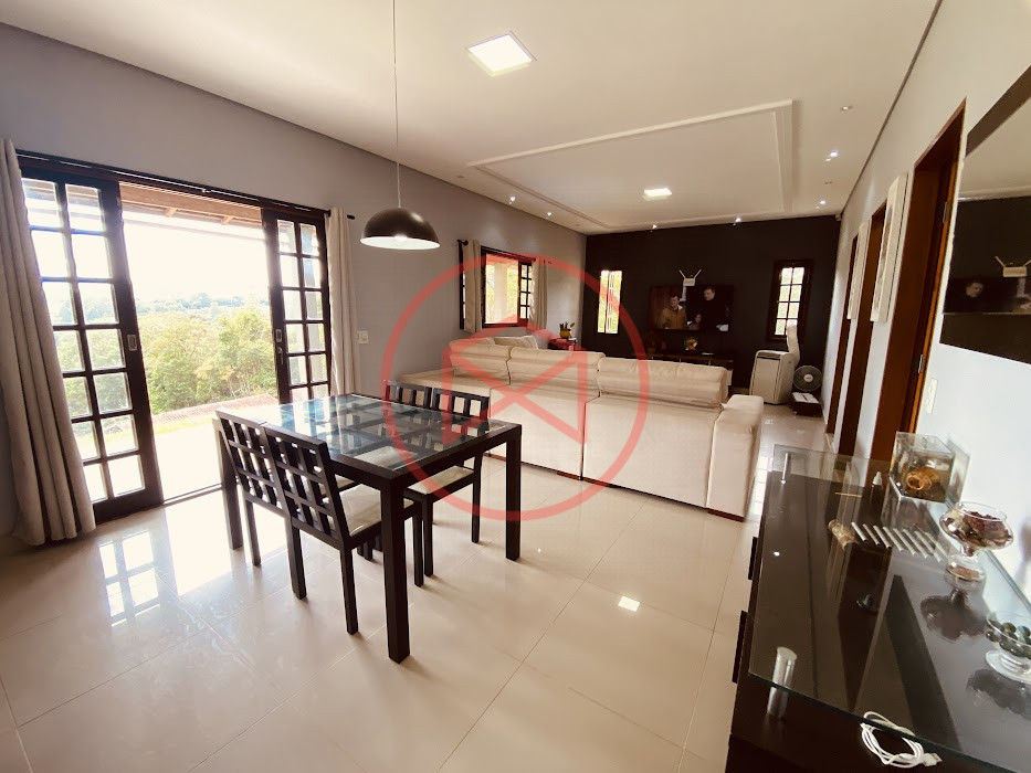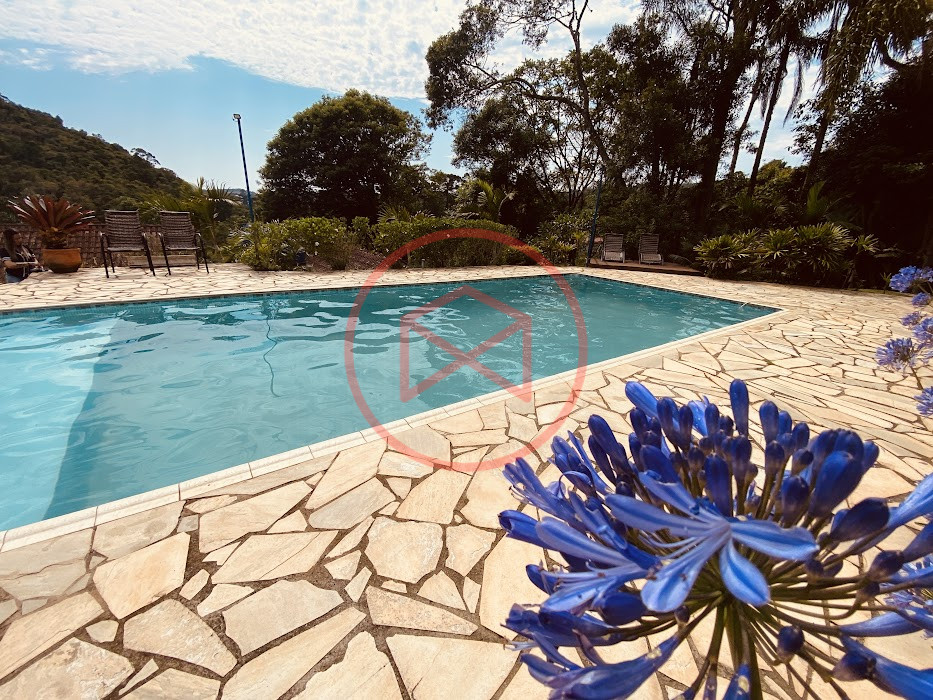 Apenas 300 mts de estrada. Lugar com linda vista panorâmica. Terreno 12.500 mts² boa topografia acima do nível da rua, bem aproveitável, 90% desmatado. Área construída em torno de 700 mts². Casa Sede com 3 suítes, sala de jantar com linda vista, sala de tv, cozinha estilo americano conceito aberto com móveis planejados, área de serviço e varandão. Casa de hóspedes com 2 quartos, sendo 1 suíte, sala, cozinha com copa, sala de tv, sala de estar, banheiro social, área de serviço e varanda. Espaço Gourmet com "trio-mineiro": churrasqueira, forno e fogão a lenha, pia como suporte e lavabo, salão de jogos/festa integrado. Piscina em vinil com prainha, deck de pedra natural e pequeno deck de madeira. Lago com nascente. Propriedade toda gramada. Horta. Pomar com árvores frutíferas. Bosque com árvores nativas. Campo de futebol. Galpão. Galinheiro. Canil. Playground. Espaço para estacionar em média de 10 carros. Totalmente cercado com alambrado e entrada padrão de chácara. Localizada apenas 30 minutos da cidade, telefone fixo e internet fibra óptica, chácaras vizinhas formadas por moradores e veraneios. Vale a pena analisar essa grande oportunidade.