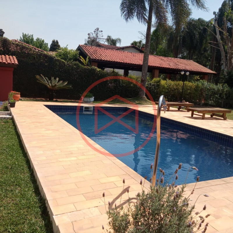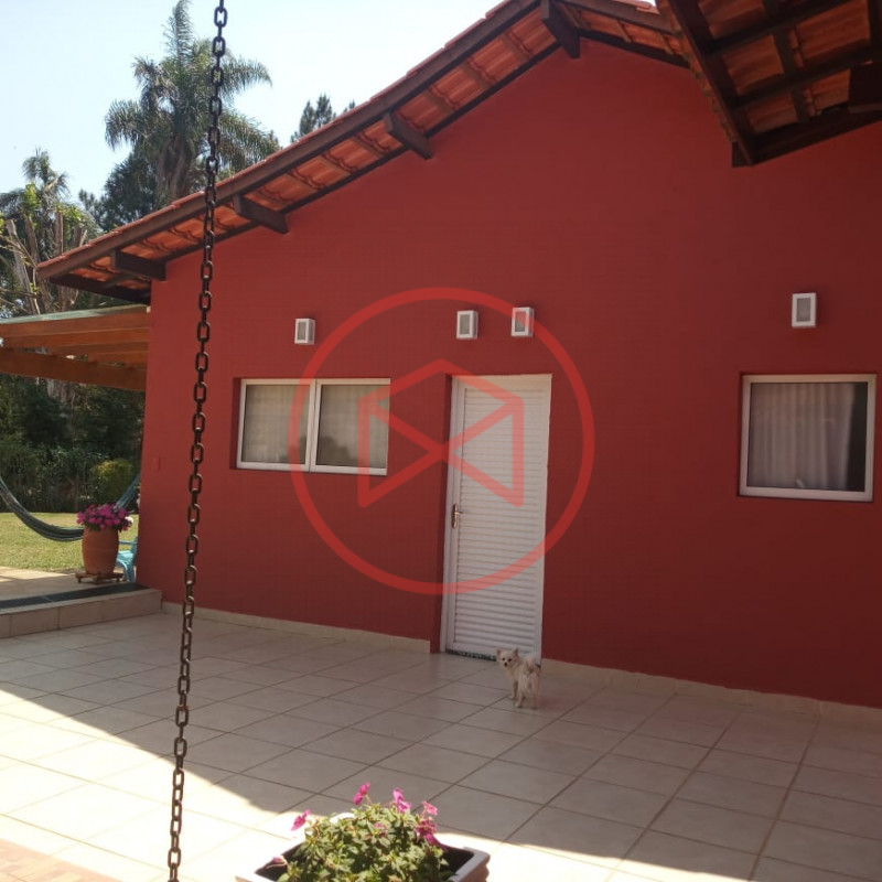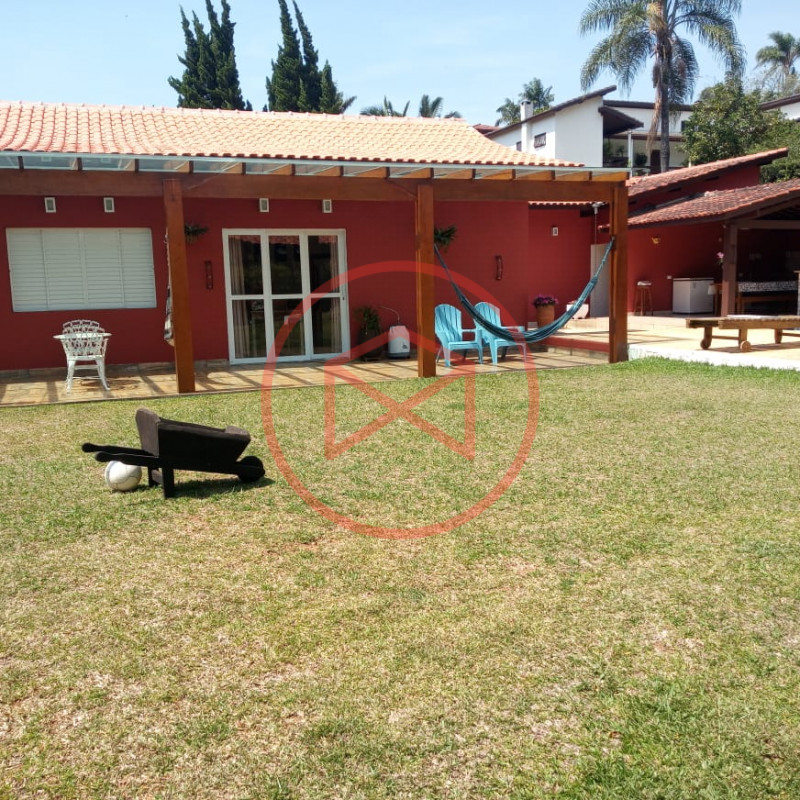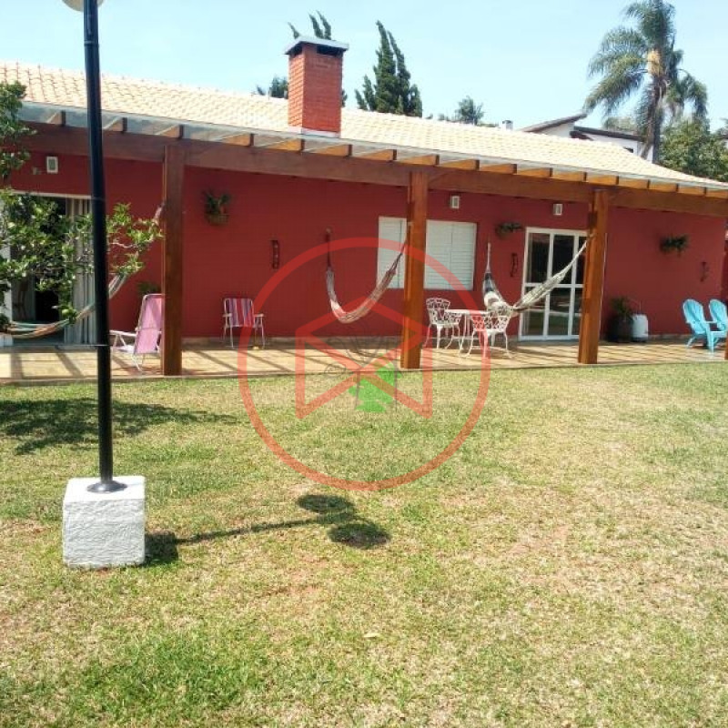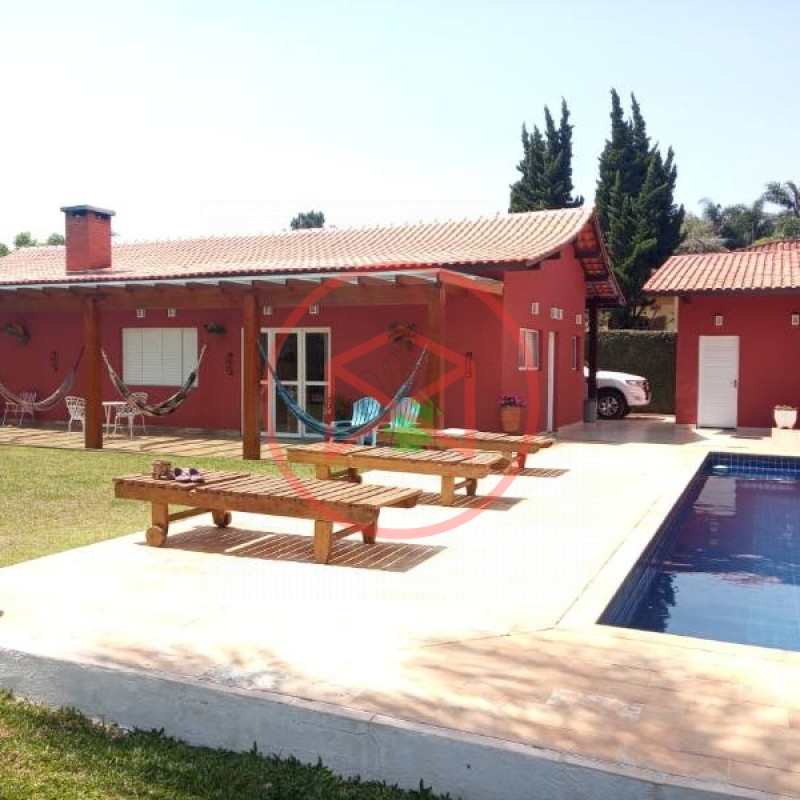 Terreno total de 800 mts². Topografia com ótimo aproveitamento e totalmente plano e gramado. Acima do nível da rua. Área construída de 280 mts² tudo novo e conservado. Casa com 5 dormitórios sendo 1 suíte. Sala com 2 ambientes com pé-direito-alto com lareira com acesso à varanda (sendo sala de jantar, estar), ampla cozinha com copa, wc social e àrea de serviço. Espaço Gourmet com churrasqueira. Piscina em alvenaria com cascata, ducha e deck de pedra mineira. Jardim com paisagismo moderno. Pomar com àrvores frutíferas. Pergolado. Espaço para estacionar 5 veículos. Totalmente cercado com muro e entrada padrão de chácara. Além das belas paisagens, o condomínio conta com ruas pavimentadas, calçadas e uma ótima infraestrutura de lazer, muito bem localizado na beira da pista principal de Ibiúna, com segurança 24 horas, portaria e ronda motorizada, clube social completo com piscinas adulto e infantil, restaurante, lagos para pesca, amplo quiosque para eventos, festas e jogos, churrasqueiras, quadra poliesportiva, playground, 03 quadras de tênis, 02 campos de futebol, praças, grande pomar comunitário, entre outros atrativos, conforto e segurança, somente 50 minutos de São Paulo, more com tranquilidade em lugar de beleza incomum, cercado por mata nativa e lindas residências, onde 70% são moradores, ideal para moradia e lazer.