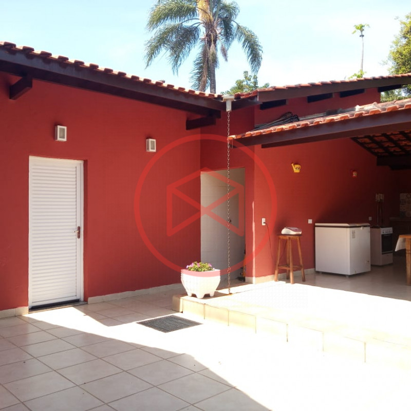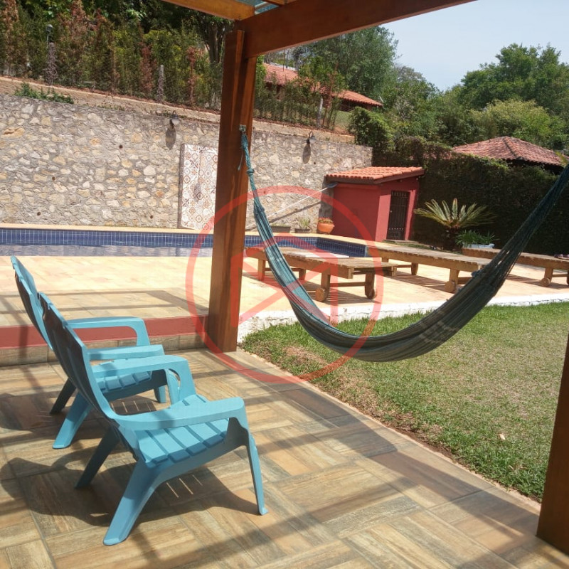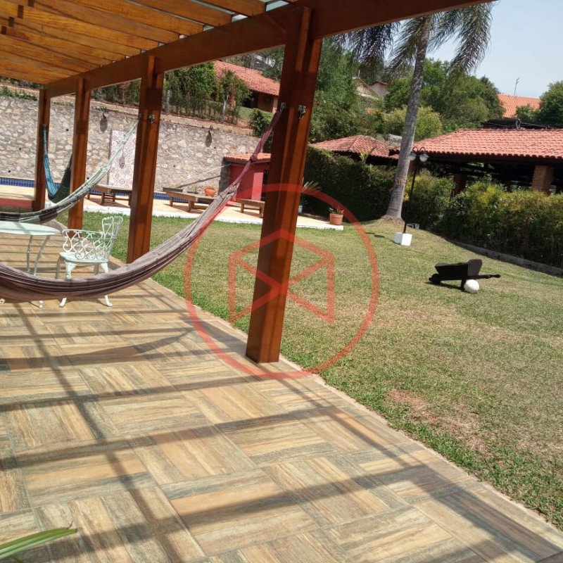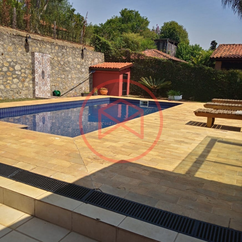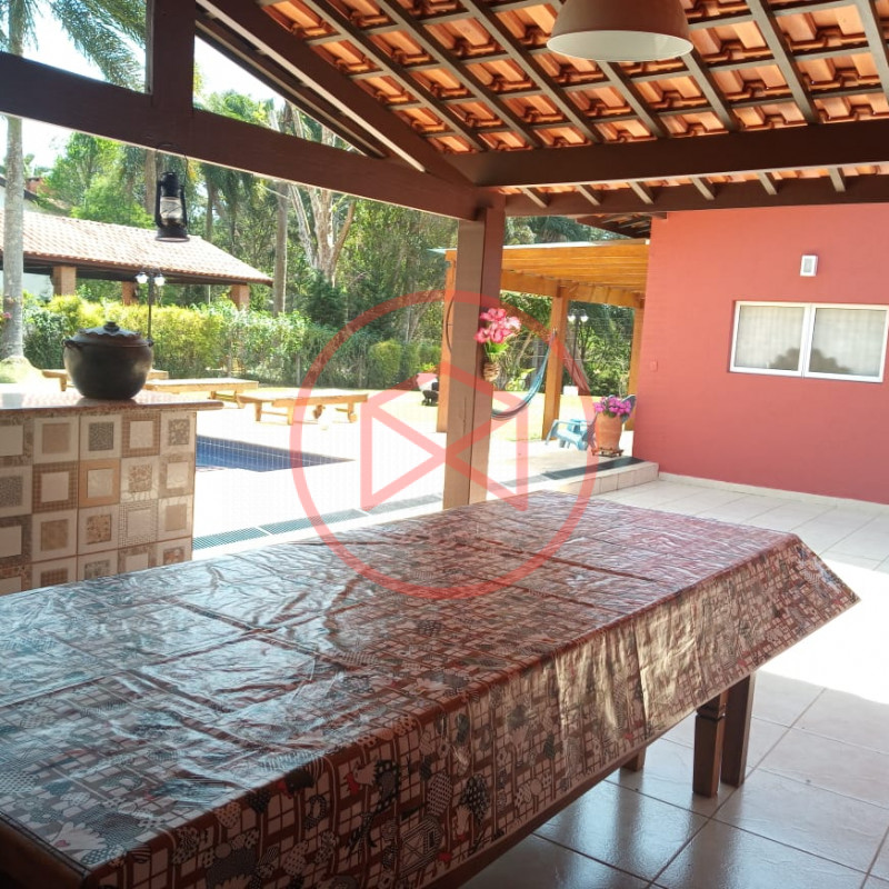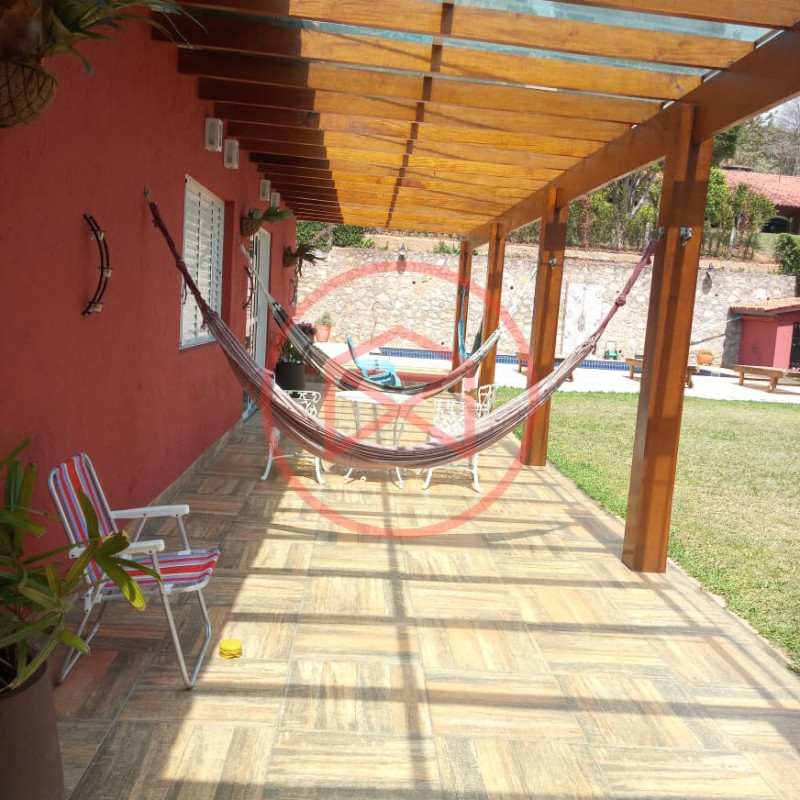 Terreno total de 800 mts². Topografia com ótimo aproveitamento e totalmente plano e gramado. Acima do nível da rua. Área construída de 280 mts² tudo novo e conservado. Casa com 5 dormitórios sendo 1 suíte. Sala com 2 ambientes com pé-direito-alto com lareira com acesso à varanda (sendo sala de jantar, estar), ampla cozinha com copa, wc social e àrea de serviço. Espaço Gourmet com churrasqueira. Piscina em alvenaria com cascata, ducha e deck de pedra mineira. Jardim com paisagismo moderno. Pomar com àrvores frutíferas. Pergolado. Espaço para estacionar 5 veículos. Totalmente cercado com muro e entrada padrão de chácara. Além das belas paisagens, o condomínio conta com ruas pavimentadas, calçadas e uma ótima infraestrutura de lazer, muito bem localizado na beira da pista principal de Ibiúna, com segurança 24 horas, portaria e ronda motorizada, clube social completo com piscinas adulto e infantil, restaurante, lagos para pesca, amplo quiosque para eventos, festas e jogos, churrasqueiras, quadra poliesportiva, playground, 03 quadras de tênis, 02 campos de futebol, praças, grande pomar comunitário, entre outros atrativos, conforto e segurança, somente 50 minutos de São Paulo, more com tranquilidade em lugar de beleza incomum, cercado por mata nativa e lindas residências, onde 70% são moradores, ideal para moradia e lazer.