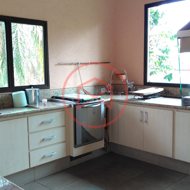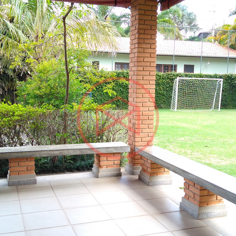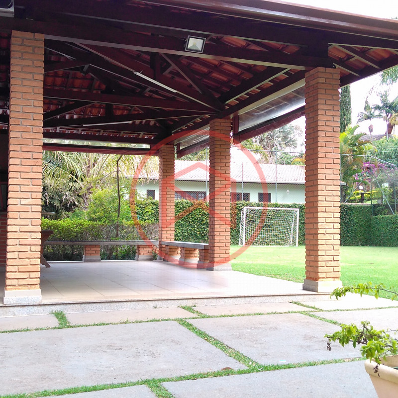 Área de terreno 1.600 mts², 100% aproveitável, ótima topografia e totalmente gramado. Área construída: 350 mts², tudo de ótima qualidade , muito bem conservado e de bom gosto. Casa estilo Casa de Campo. Parte do Mezanino: Hall de entrada com sala de leitura, 5 suítes amplas, Parte Superior: com 4 amplas salas sendo sala de jantar, sala de tv, sala de estar com lareira e sala de reunião, cozinha grande com copa, lavabo e área de serviço. Piso Inferior: Escritório, salão de jogos com sala de tv, lavabo, 1 suite, sala de estar envidraçada com acesso a varanda, 1 suíte externa para hospedes com sala íntima, toda a casa com aquecimento a gás. Lavanderia. quartinho de ferramentas, Piscina em alvenaria, deck de pedra goiania. Amplo espaço Gourmet com churrasqueira, forno de pizza e cozinha integrada. Wc social, quartinho de despejo. Casa Cinematográfica!!! Campo de futebol, Quadra de basquete. Quartinho de ferramentas. Diversas vagas para estacionar, sendo 2 vagas cobertas. Paisagismo moderno e decorativo ao redor da chácara. Quiosque. Poço artesiano com reservatório de água. Totalmente cercada com alambrado e cerca viva, total privacidade. Condomínio com segurança 24 hs, ronda e portaria, clube com piscina adulto e infantil, restaurante, vestiários, campo de futebol, quadras de tenis, mini golf, bicicross, lago, quiosque para festas, fácil acesso de frente para o asfalto. Documentação 100%, Escritura e Matricula. Ideal para moradia e/ou veraneio.
