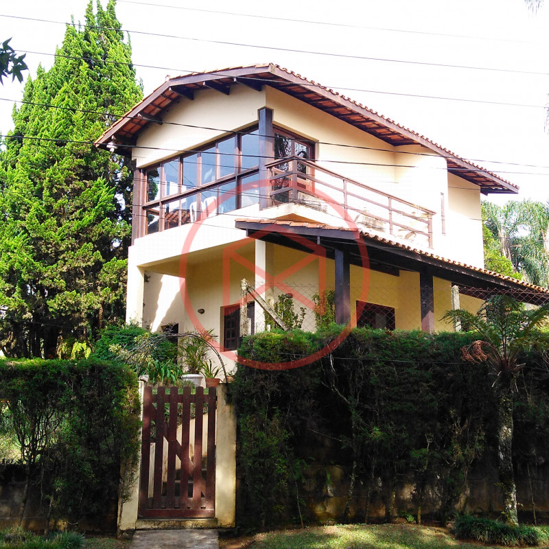 Condominio de Alto Padrão. Terreno 1.200 mts² boa topografia, totalmente gramado lugar privilegiado. Linda vista panorâmica. Área construída 317 mts², tudo de primeira qualidade. Casa Sede Estilo Colonial, com 4 dormitórios, sendo 2 suíte, 1 lavabo, banheiro social, sala com 2 ambientes, sendo sala de jantar e sala de estar com lareira, mezanino com sala de TV, cozinha, despensa, área de serviço, varanda, sótão. Espaço Gourmet com churrasqueira, cozinha. Piscina em alvenaria 5x11 com prainha e hidro, Sauna seca, vestiário e banheiro. Árvores frutíferas. Garagem para diversos carros. Canil. Quartinho de ferramentas. Totalmente cercado com alambrado e cerca viva, entrada padrão de chácara. Condominio oferece clube, restaurante, pista de mini golf, quadras de tenis, etc. vale a pena analisar!