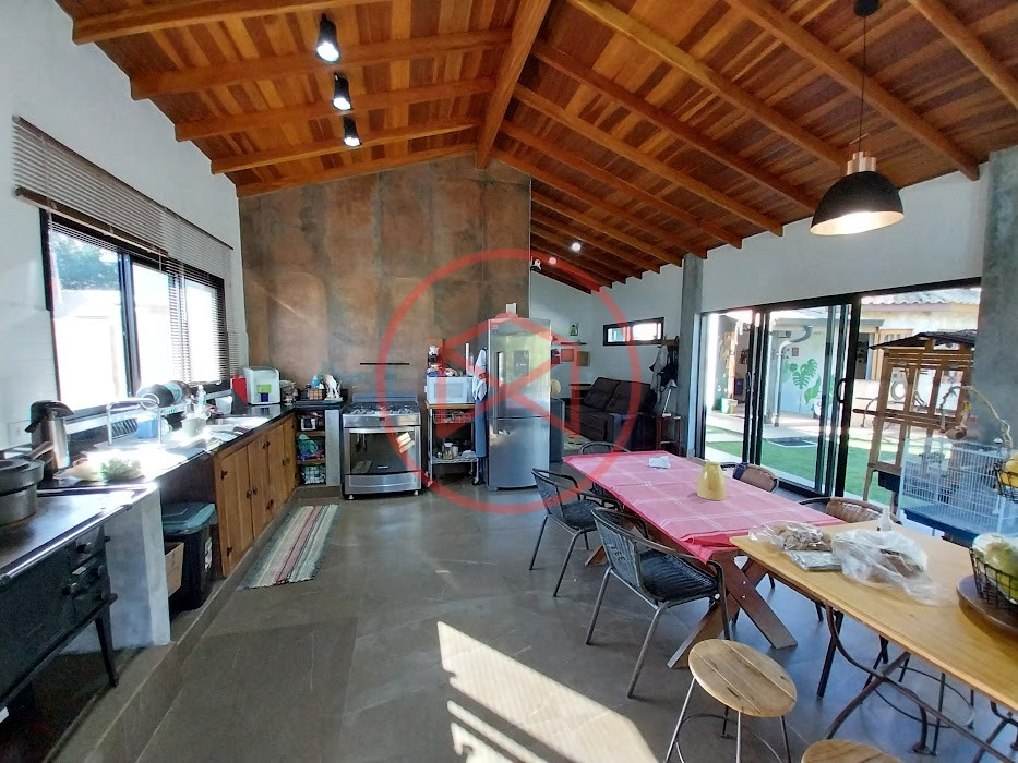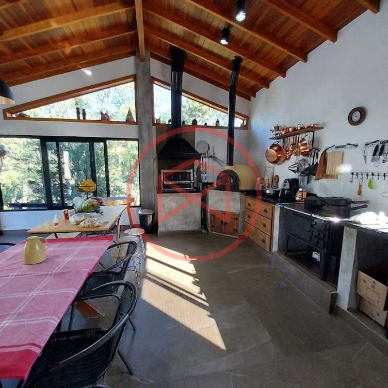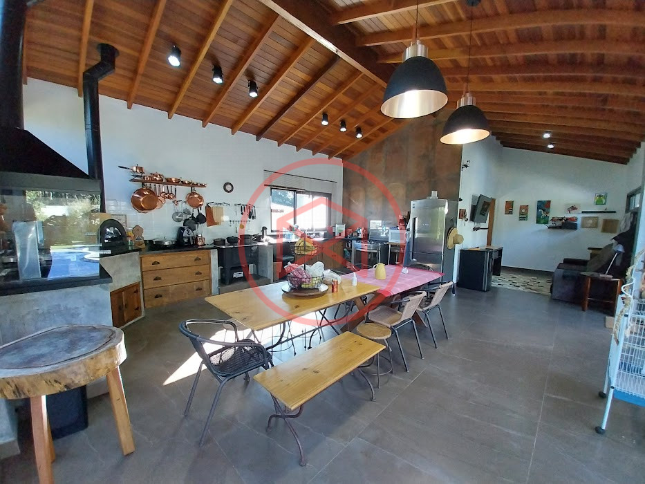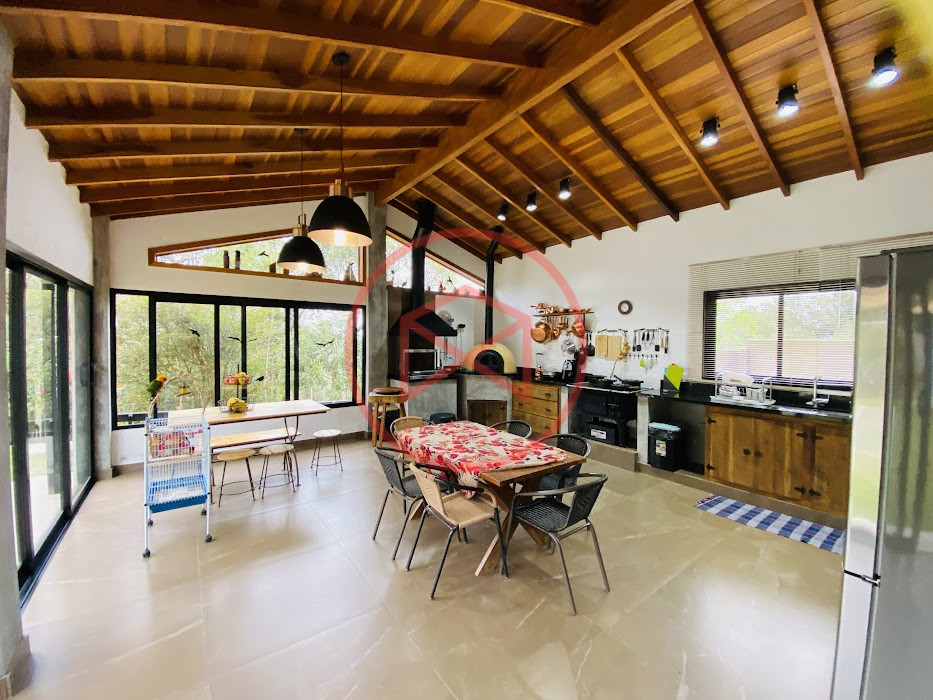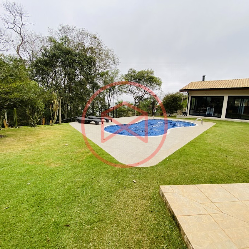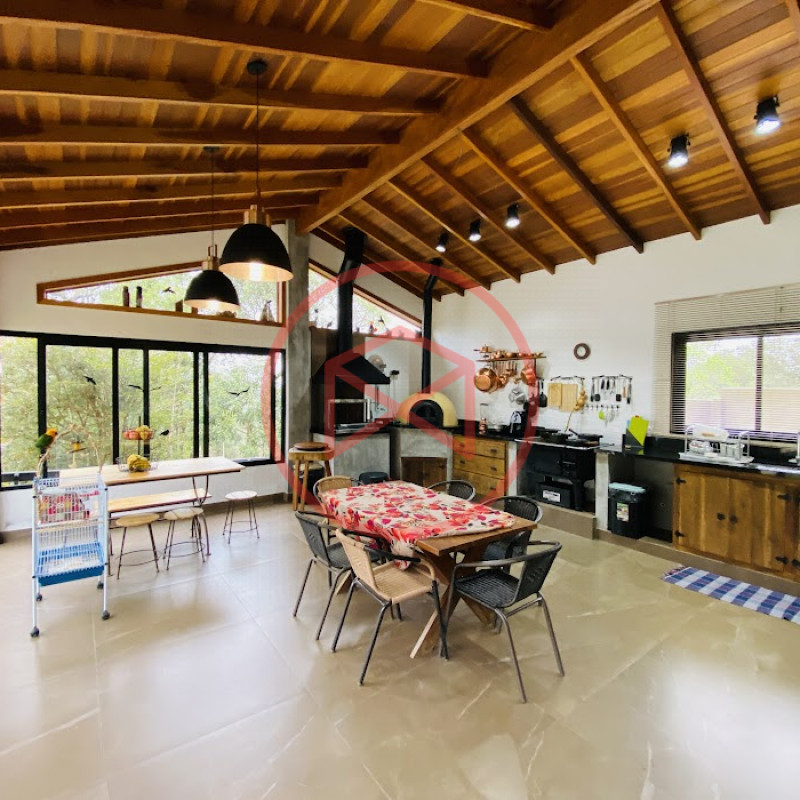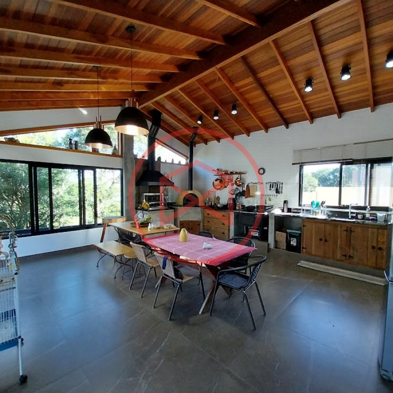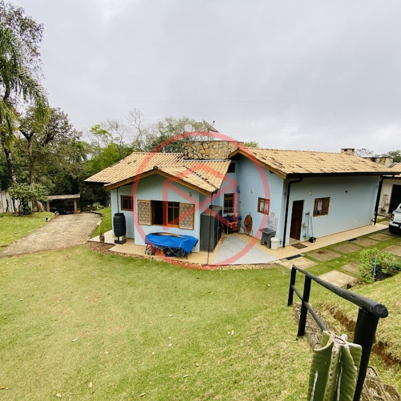 Terreno com 2.100 mts2 contendo 356,00 mts2 de área construída, Casa com 02 dormitórios sendo 01 suite com porta balcão voltada para a piscina e banheiro social, sala 02 ambientes (sala de jantar com lareira e sala de estar), lavabo, cozinha com móveis planejados, dispensa e área de serviço. Casa toda preparada para instalação de aquecimento solar/gás. Espaço gourmet com churrasqueira, forno de pizza, fogão a lenha, com cozinha completa e ampla bancada de mármore e móveis planejados, suíte para hóspedes e sala de TV. Aquecimento solar. Piscina 8 x 4 m em vinil aquecida recém reformada com iluminação interna controlada por controle remoto, deck de piso antiderrapante, cascata e ducha. Sauna seca elétrica automatizada. Banheiro externo. Playground. Redário. Fogo de chão. Quarto de depósito e canil com caixa d’água central de 5.000 litros. Caixa de água de recalque instalada próximo do relógio medidor de consumo com 5.000 litros e automação para bombeamento quando o nível da caixa superior (Depósito) estiver abaixo de 50% do volume. Toda as calhas de coleta de água dos telhados estão canalizadas o que permitirá a instalação de cisterna para reutilização da água. Pomar gramado com árvores frutíferas produzindo. Rampa de acesso com bloquetes sextavados até área das construções. Propriedade com muros e alambrados cercando-a e entrada padrão de chácara. Agende já sua visita!