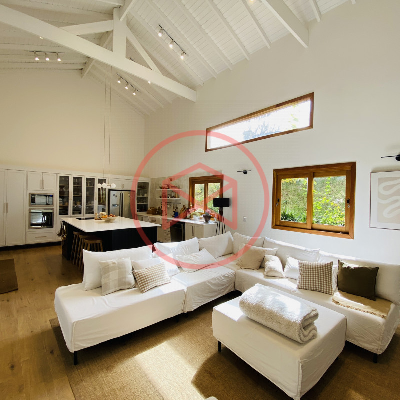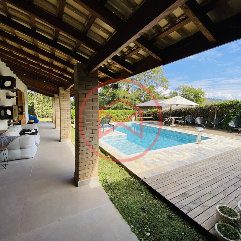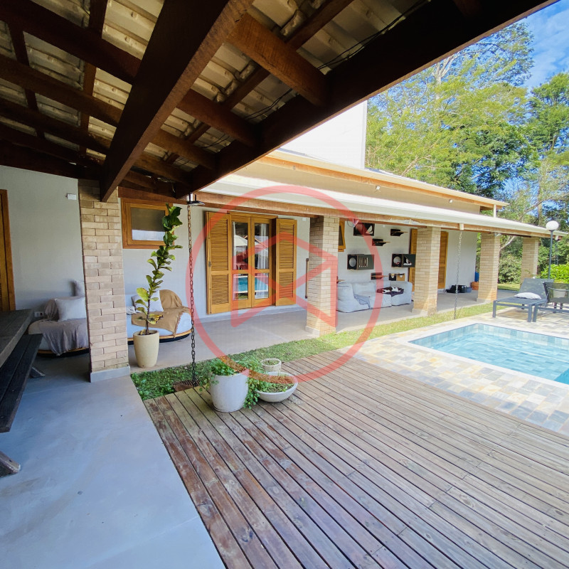 Terreno 1.000 mts, excelente topografia. Casa com 250mts², moderna com móveis planejados e com aquecimento a gás em todas as torneiras e chuveiros, com 3 dormitorios com ar condicionado, sendo 1 suite com 50 mts², banheiro social, ampla sala estar com lareira, construção com acabamento de alto padrão. Cozinha com ilha em conceito aberto e toda equipada. Casa toda com muita iluminação natural e muito bem ventilada. Varanda com Espaço gourmet com churrasqueira e pia de apoio. Piscina com prainha e aquecimento solar. Deck de madeira. Banheiro externo. Lavanderia. Terreno cercado por alambrado e cerca viva. Localizado em Condominio fechado com portaria e segurança 24 hrs, frente para rodovia Bunjiro Nakao, conta com lago para pesca esportiva, trilha ecologica de caminhada, playgound, campo de futebol e churrasqueiras. Apenas 1 km de ditância dos comércios, padarias, farmácia, academia, mercadinho. Possui Internet fibra e agua de Sabesp. Documentação Escritura e Matricula, agende já a sua visita!