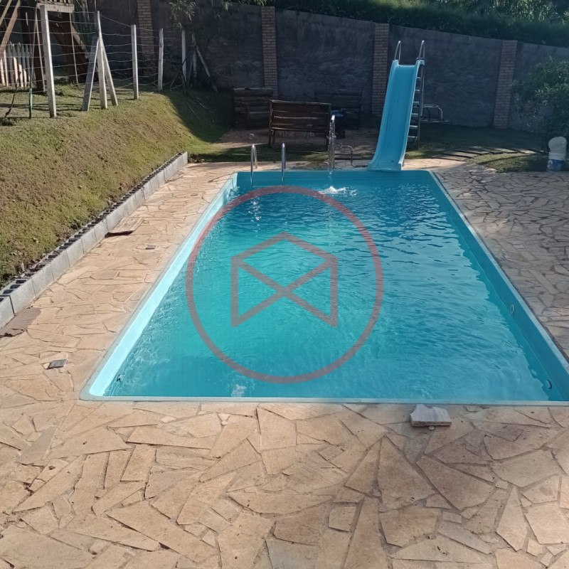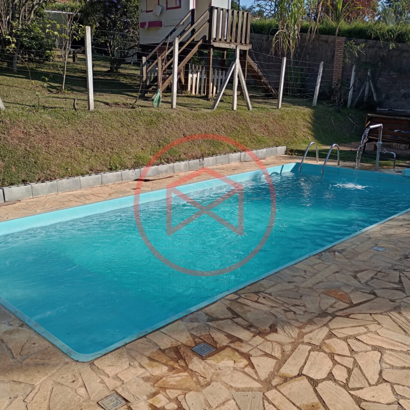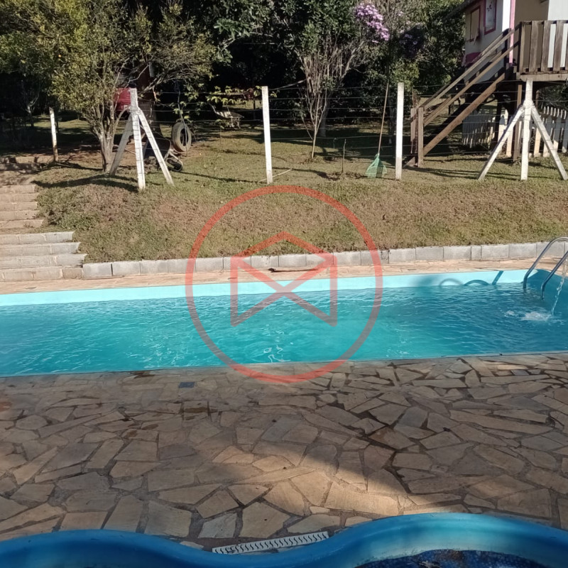 Terreno 1.500 mts², totalmente gramado e cercado com alambrado e cerca viva. Área construída em torno de 200 mts². Casa com 2 dormitórios, sendo 1 suíte, sala com 2 ambientes (sendo sala de tv e sala de estar), cozinha com copa integrados, banheiro social. Varanda. Lavanderia. Suíte externa. Piscina infantil de fibra com deck de pedra mineira e ponto de cascata, Piscina Adulto em fibra com luz de led e cascata. Espaço para estacionar diversos carros. Canil com 4 baias. Pomar produzindo. Linda vista panorâmica. Lago. Entrada padrão de chácara. Localizada em fácil acesso próxima ao centro, comércio local, escola, telefone fixo, internet fibra óptica, ideal para moradia e/ou veraneio.