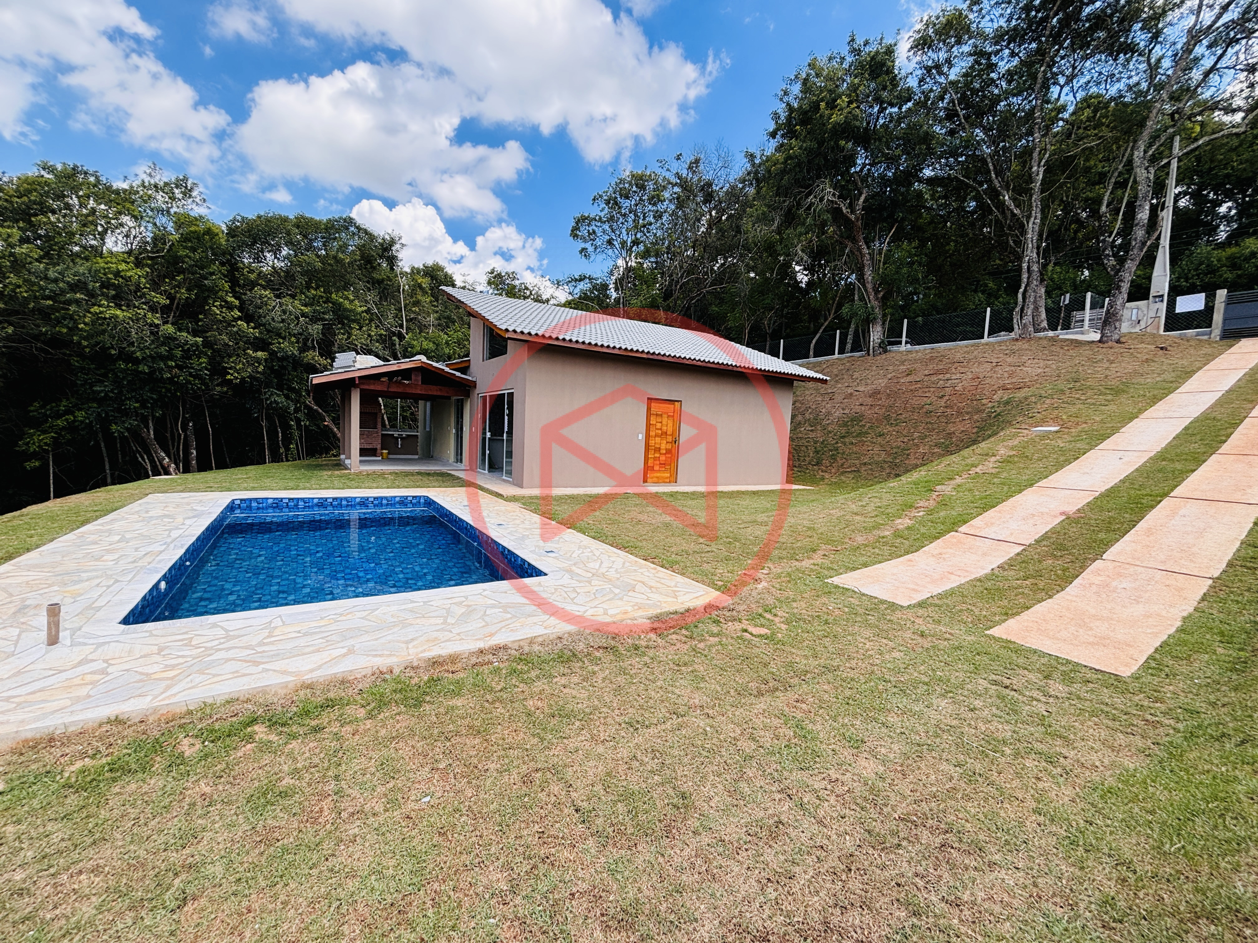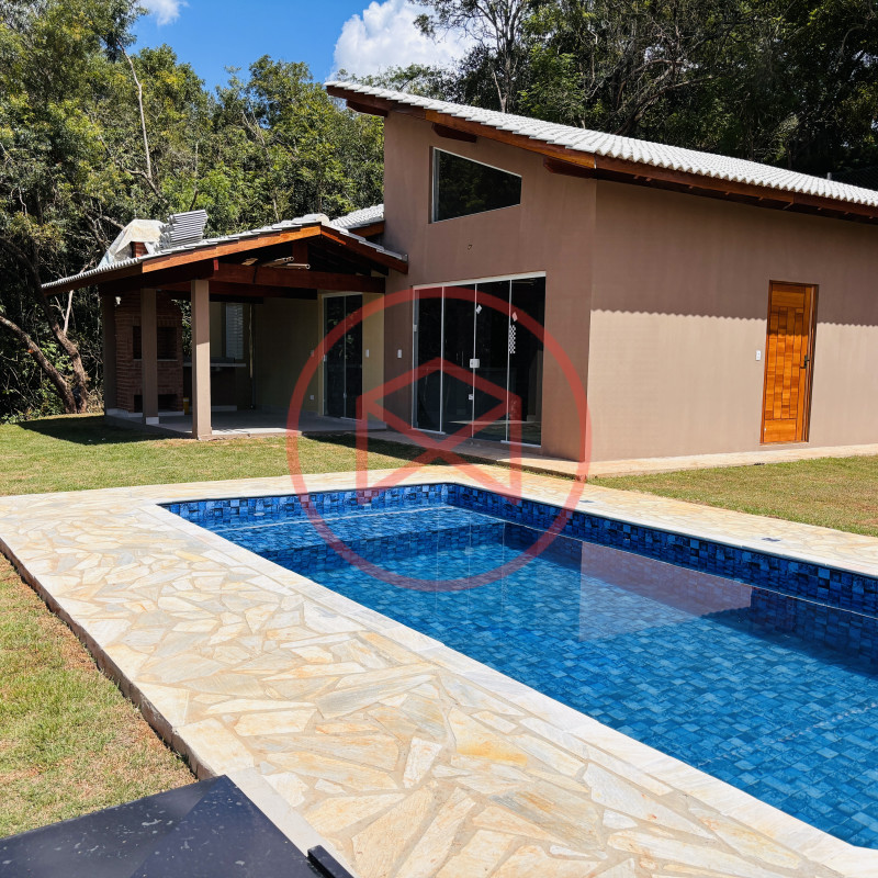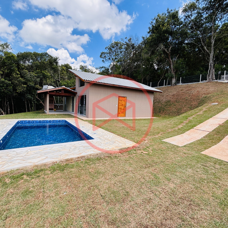 Terreno de 1.250 mts², totalmente gramado, lugar privilegiado. Área construída em 120 mts² tudo de boa qualidade e bom gosto. Casa Nova e Arquitetura Moderna com 03 dormitórios, sendo 1 suíte, cozinha conceito aberto, sala com 02 ambientes, banheiro social e varanda gourmet com churrasqueira e pia de apoio . Piscina com prainha. Espaço para estacionar 02 veículos. Totalmente cercado com alambrado e entrada de chácara com portão de madeira. Boa localização, 600 mts do asfalto, fácil acesso. Local tranquilo com moradores e veraneios ao redor, comércio local na pista principal, telefone fixo, internet fibra, ônibus circular para o Centro de Ibiúna. Água da Sabesp. Venham conferir essa grande oportunidade!
