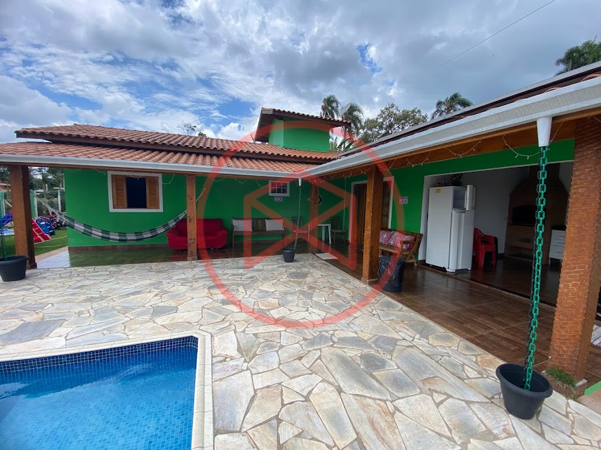 Terreno de 1.600 mts, ótima topografia, totalmente gramado, lugar alto com linda vista panorâmica. Área construída em torno de 250 mts² tudo de boa qualidade e bom gosto. Casa Sede com 02 dormitórios, corredor lateral, cozinha conceito aberto, sala com 02 ambientes com pé-direito-alto e porta balcão, banheiro social e varanda em formato de "L". Área de serviço, banheiro externo e despensa. Placas de iluminação e quecimento solar. Espaço gourmet com churrasqueira e pia de apoio. Piscina em vinil com prainha, cascata e deck de pedra mineira. Campo de futebol. Casa de hóspedes com 01 dormitório, banheiro social e cozinha espaçosa. Pomar com diversas árvores já produzindo. Horta. Espaço para estacionar em média de 08 veículos. Poço caipira. Totalmente cercado com alambrado e entrada padrão de chácara. Boa localização, apenas 6 km do Centro de Ibiúna. Venham conferir essa grande oportunidade !!!