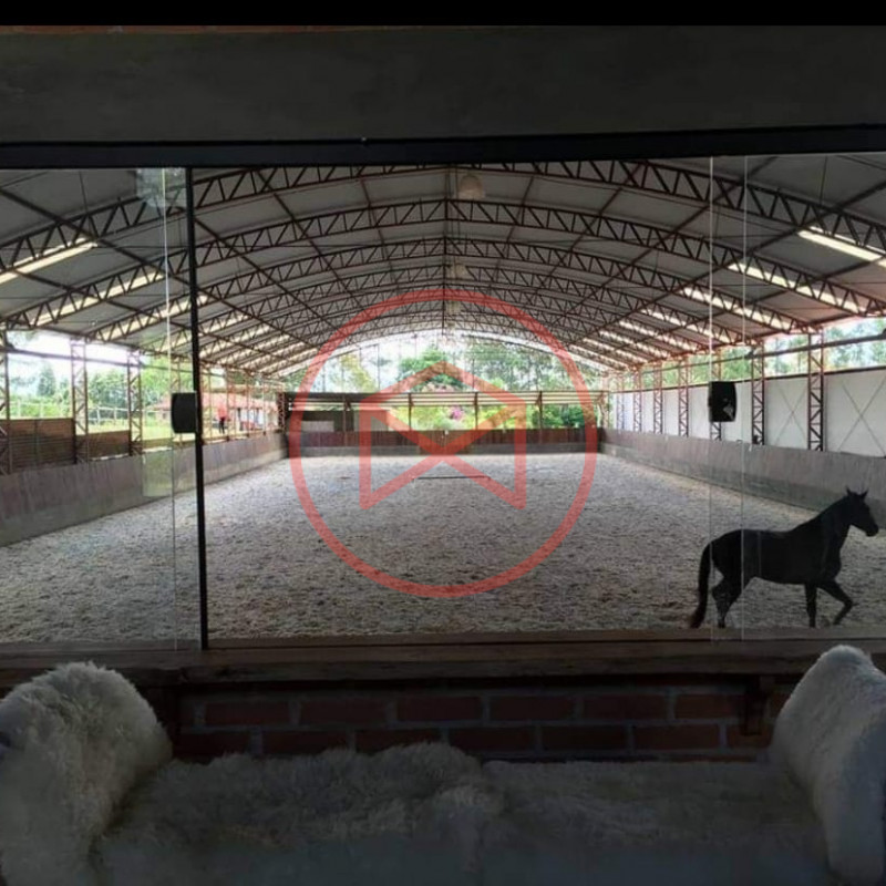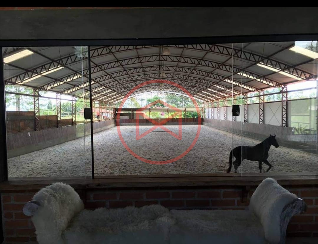 Haras cinematográfico com 96.000 mts², área construída em torno de 5.000mts². Casa sede com 03 dormitórios, sendo 01 suíte, sala 02 ambientes ampla (jantar e estar), cozinha, copa, banheiro social, lavanderia. Varanda. Área gourmet com churrasqueira e pia de apoio. Horta. Galinheiro. Quartinho de ferramentas. Água direto da mina. Pista coberta com piso padrão olímpico, tribuna com escritório, sala jantar e estar, cozinha, banheiro masculino e feminino + 01 suíte e quarto de depósito. Área do haras com 22 cocheiras e mais de 10 piquetes. 02 caixas d'água de taça. Farmácia com tronco para palpação. Barracão de feno. Plantação de feno. Grande parte com concreto usinado entre piquetes, farmácia e pista. Barracão para confinamento de éguas e potros. Área ao redor com 05 alqueires, terra formada em croast cross com açude, mais 06 alqueires formado em croast cross com 02 açudes e barracão com 1.500 mts, 03 alqueires com casa, casa de caseiro e mais 06 alqueires de área. 02 Apartamentos extras para hospedes. Apenas 700 mts asfalto e 10 km da centro da cidade. Vale a pena conhecer esta oportunidade!!